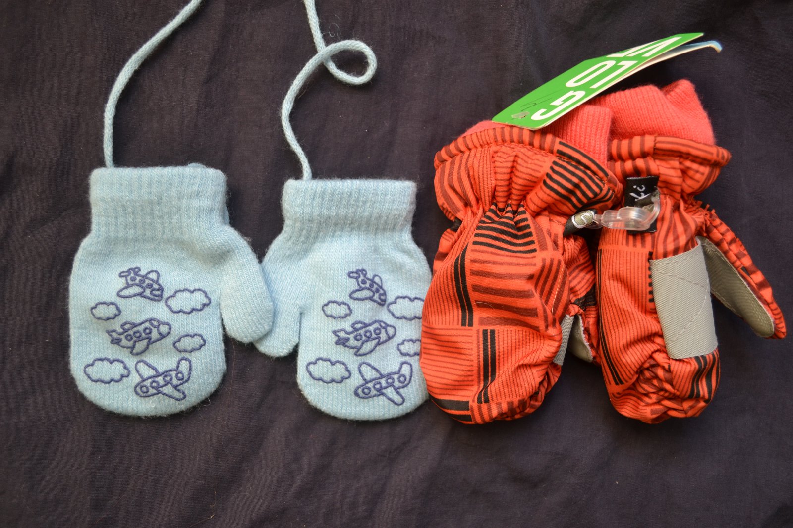 2x rukavice pro nejmenší 6-12 měs., nepromokavé a strečové palčáky,cena celkem za oba kusy