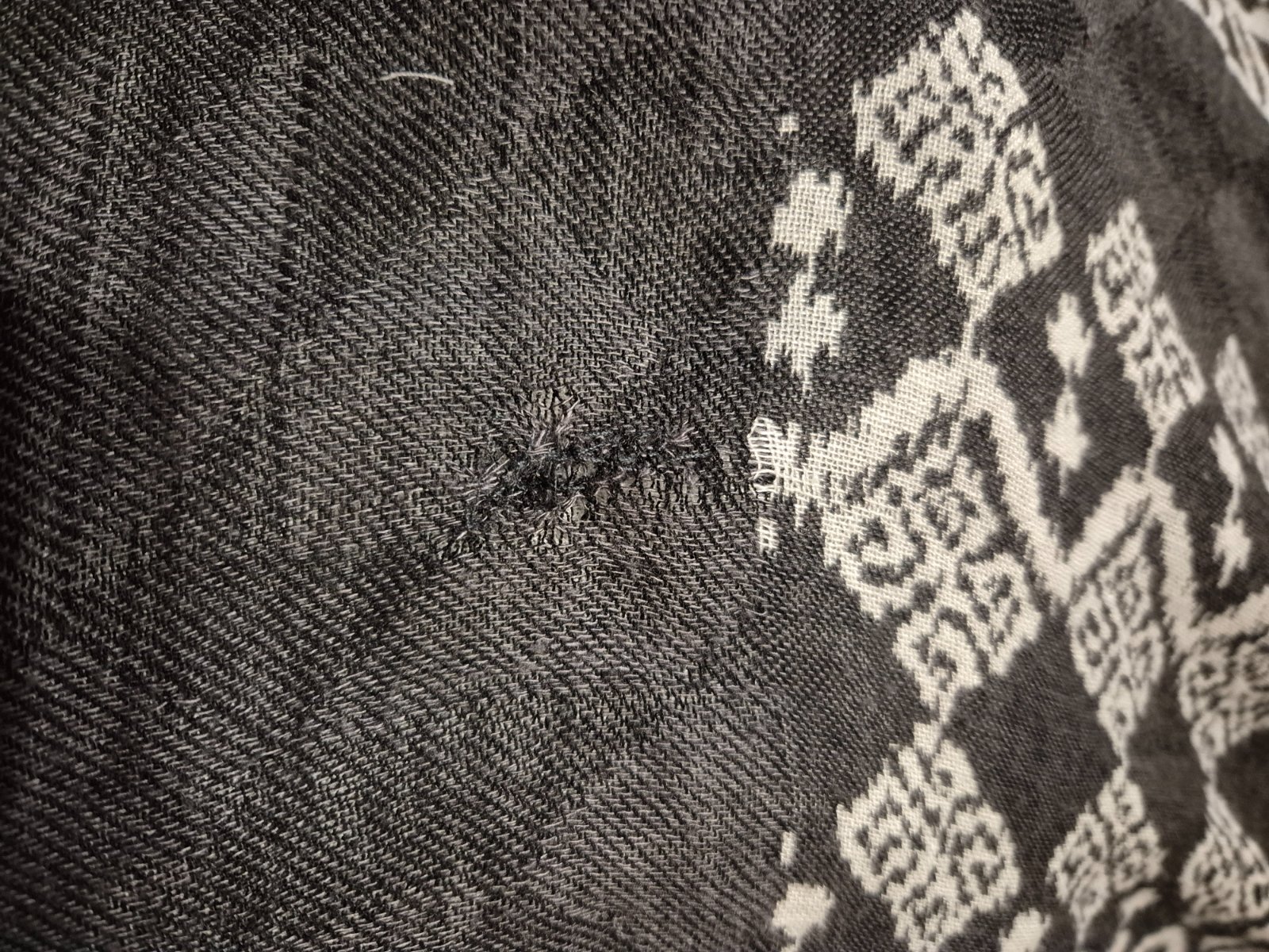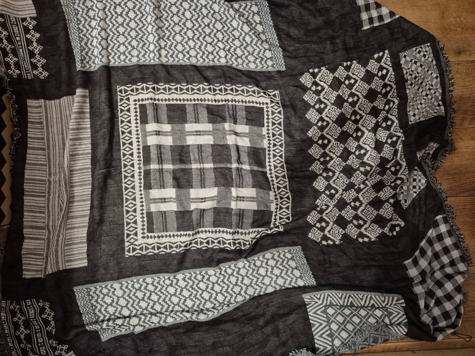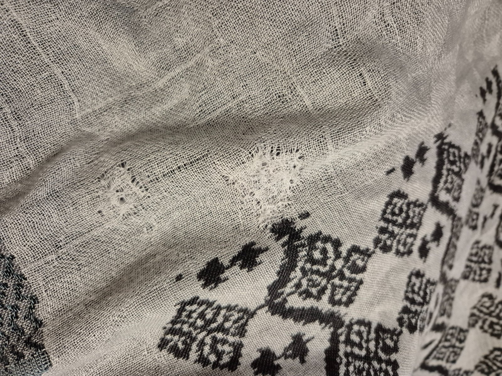 Satek je hackovany z prijemne prize, nekouse material 95%acrylic,5% polyester vel.144x67cm
