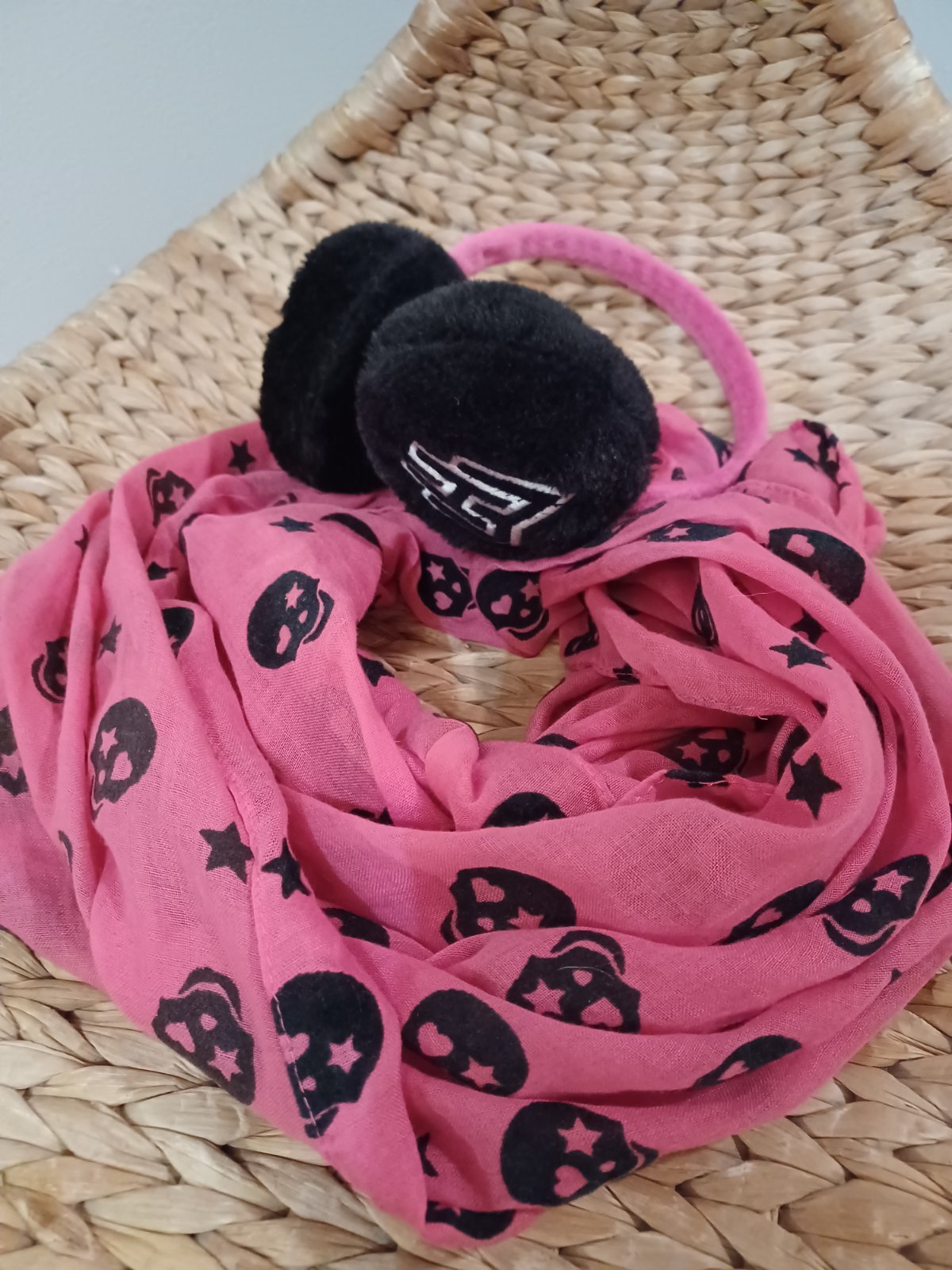 Kruhová šála šátek lebky + klapky na uši Monster h