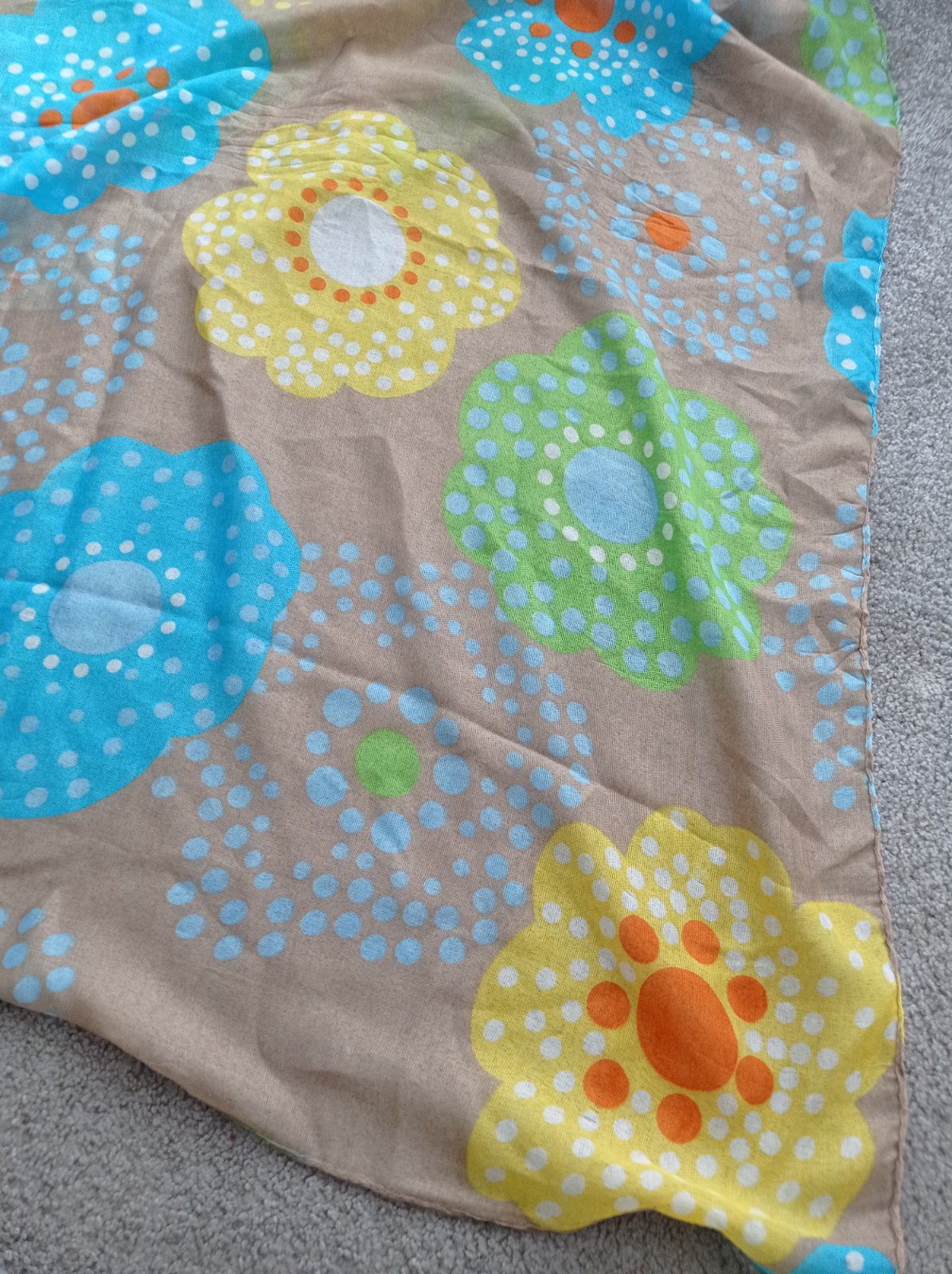 šátek je ručně zdobený. jemný lehký materiál. rozměry 86x83 cm. bezvadný stav.