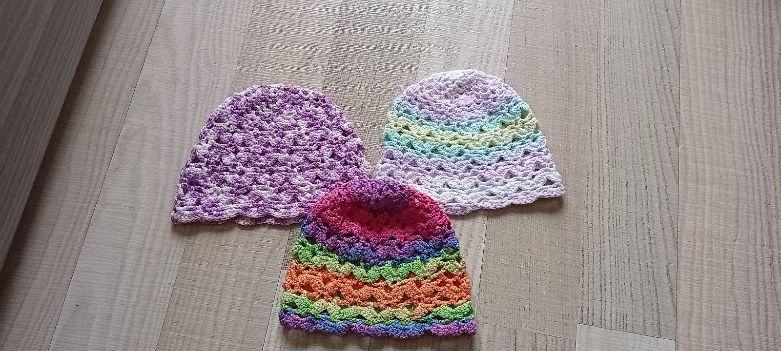 Háčkované čepičky, nošené kolem 3 roku.
