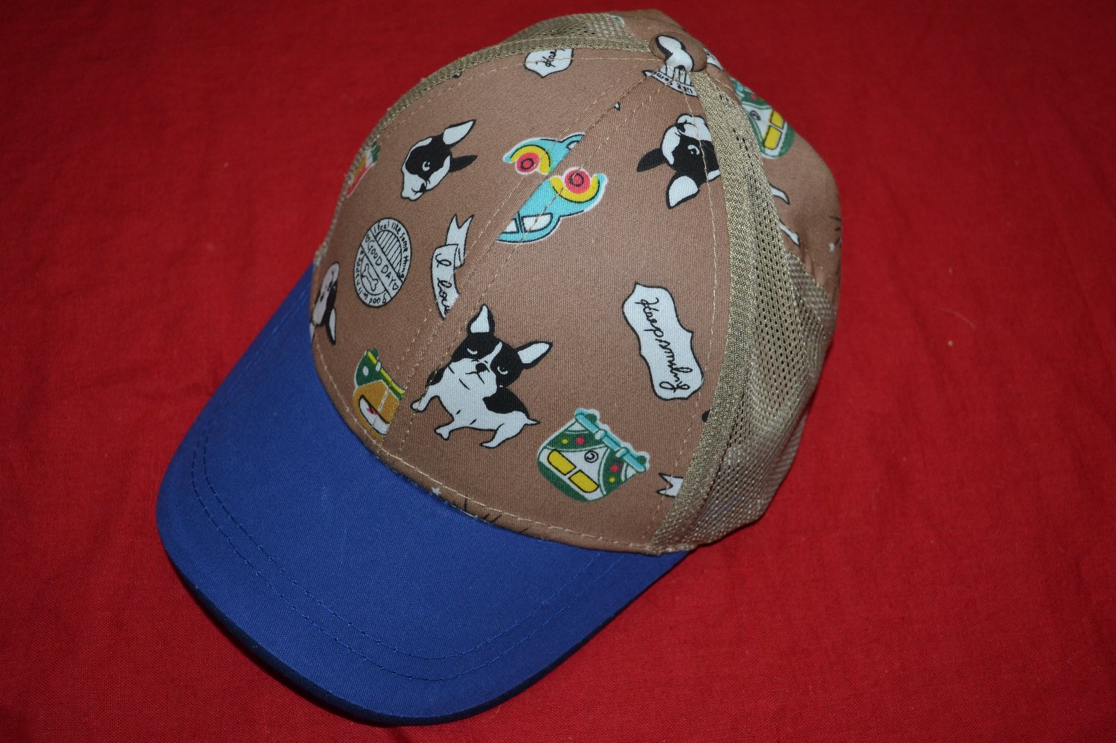 pěkná moderní kšiltovka s pejsky v.80-98,vzdušná,dírkovaná,vzadu nastavitelná