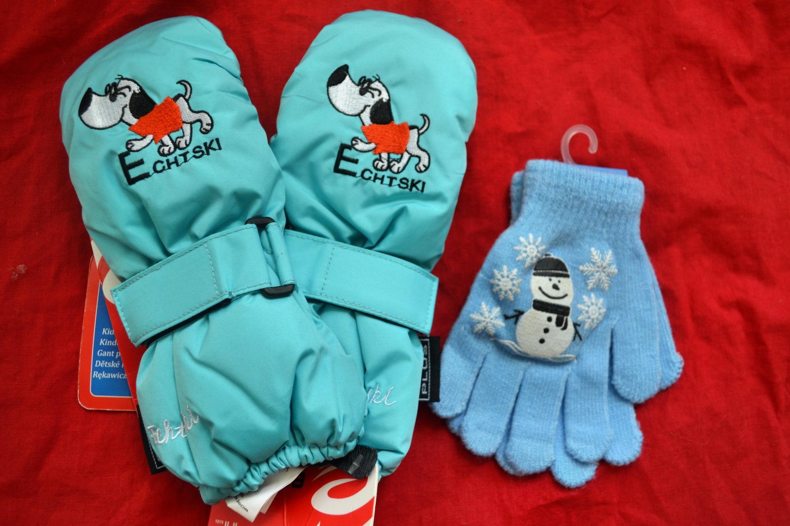 2x praktické pěkné rukavice v.98, cena celkem za oba kusy
