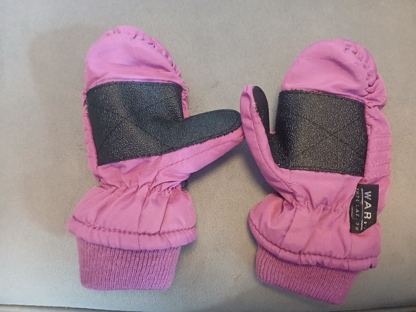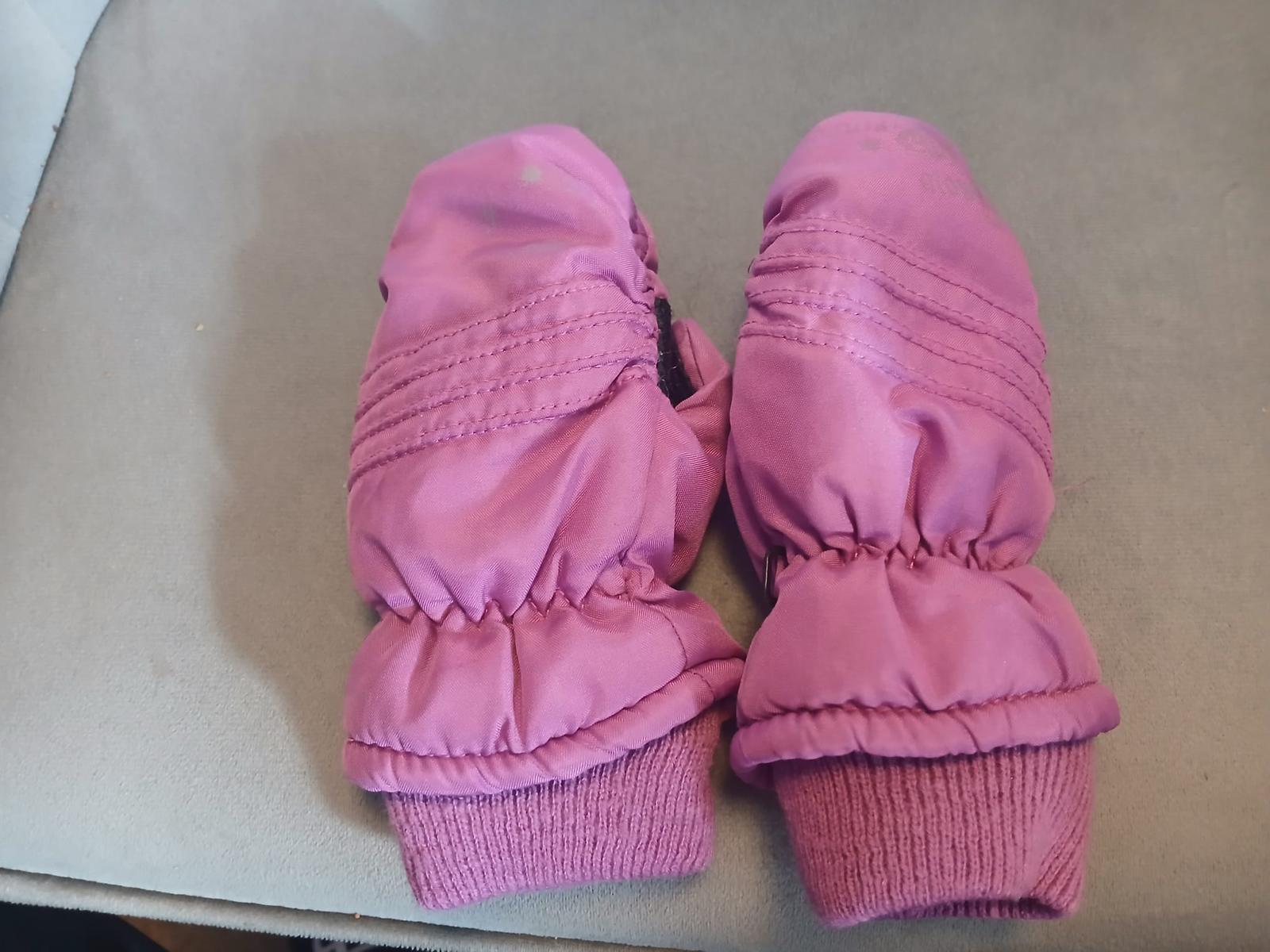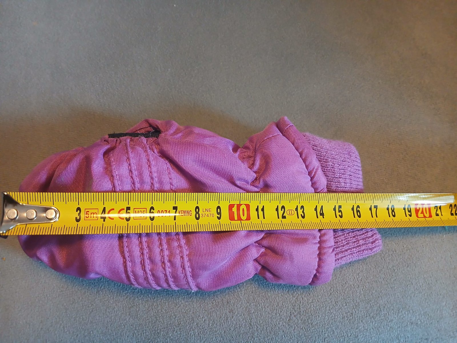 Zimní dívčí rukavice s Minnie. Délka až k úpletu je 18 cm, délka palce je 6 cm, jsou nošenejší, jsou šusťákové, mají na vnitřní straně slouplou pogumovanou část - viz foto, jinak v pořádku. Cena +...