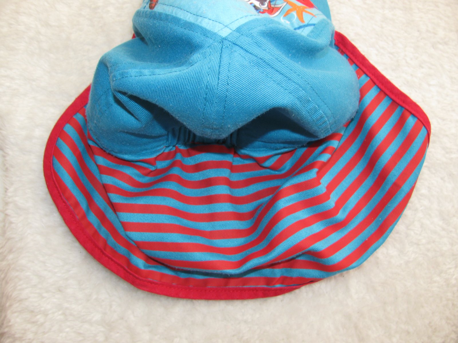 Hezká chlapecká kšiltovka s ochranou proti slunci, vzadu kolem hlavy krátká guma, ve předu krásný obrázek, je to tisk přímo v látce, vyšitá kotva, 80% polyester, 20% bavlna. Něco chloupek po praní, jinak bez dalších vad, krásný stav.
