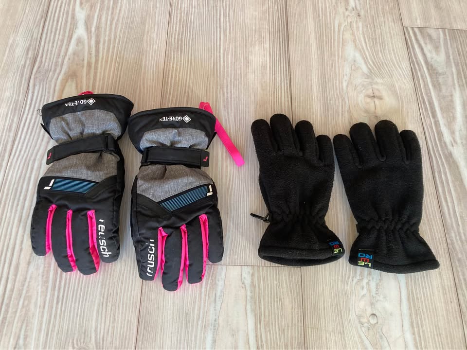 Lyžařské rukavice Reusch vel 4, druhé rukavice Lewro. Bez vad