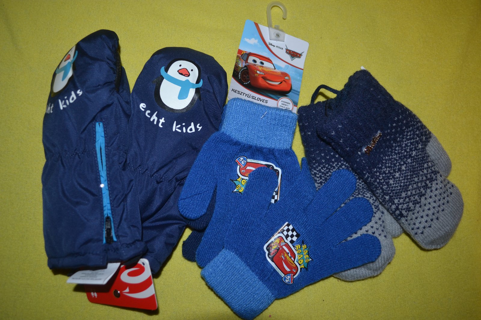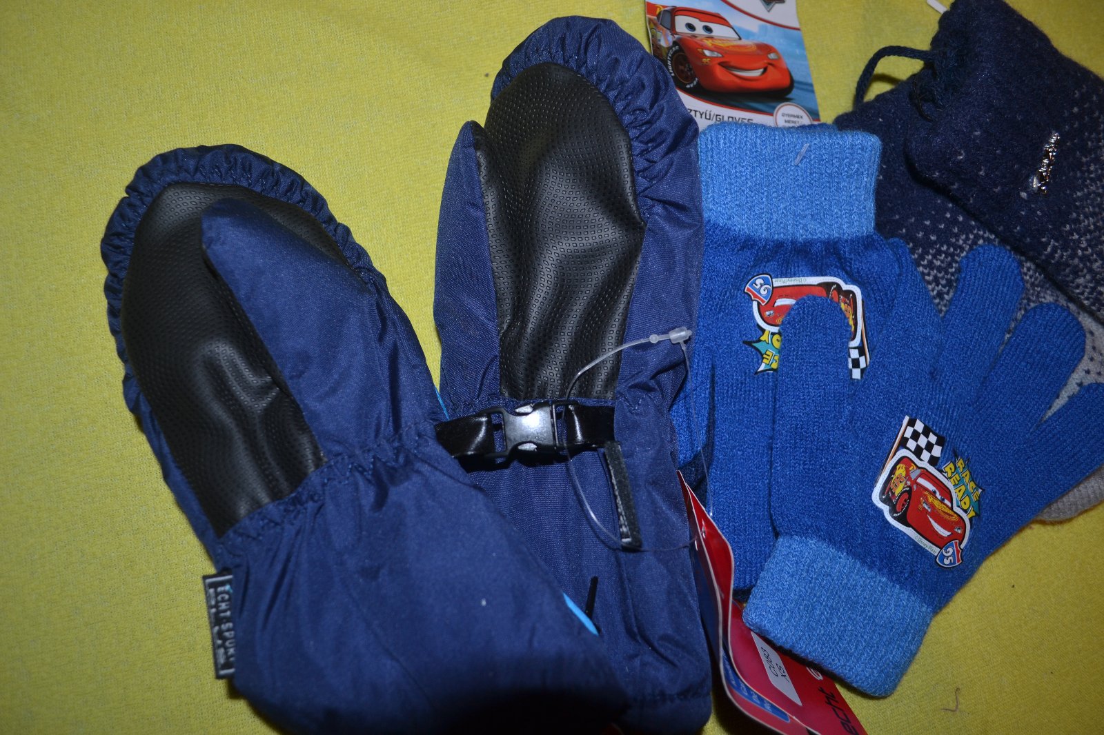 3x rukavice: prodloužené silné šusťákové, zesílené dlaně,rychle a pohodlně se oblékají díky zipu, další jsou strečové Disney Cars úpletové,pružné,další velmi silné úpletové,na 4-6 let,tato zvýhodněná cena je za všechy 3 věci celkem