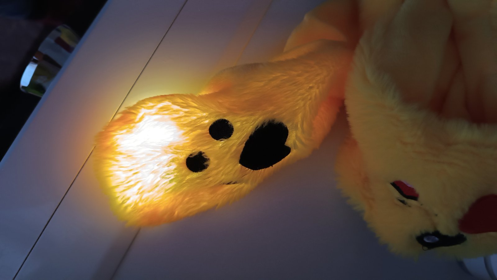 Univerzální velikost. V pacce svítí. Když zmáčknete balónek v pacce, zvedne se ucho.