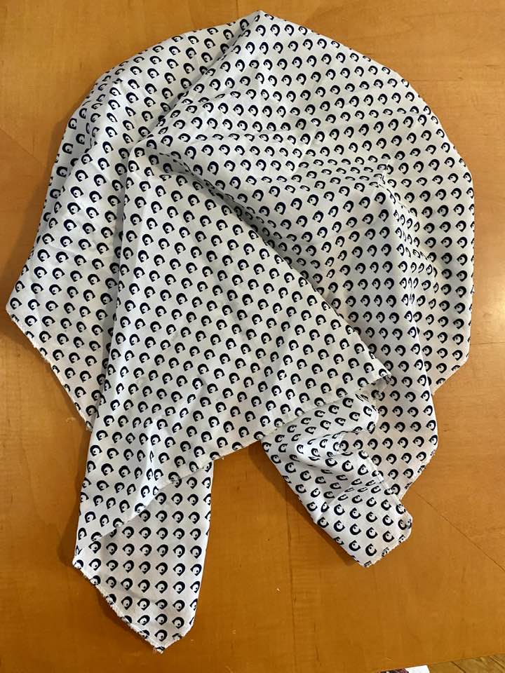 místy vytahané nitky viz foto, ale při nošení není vidět, zohledněno v ceně 106x95cm
