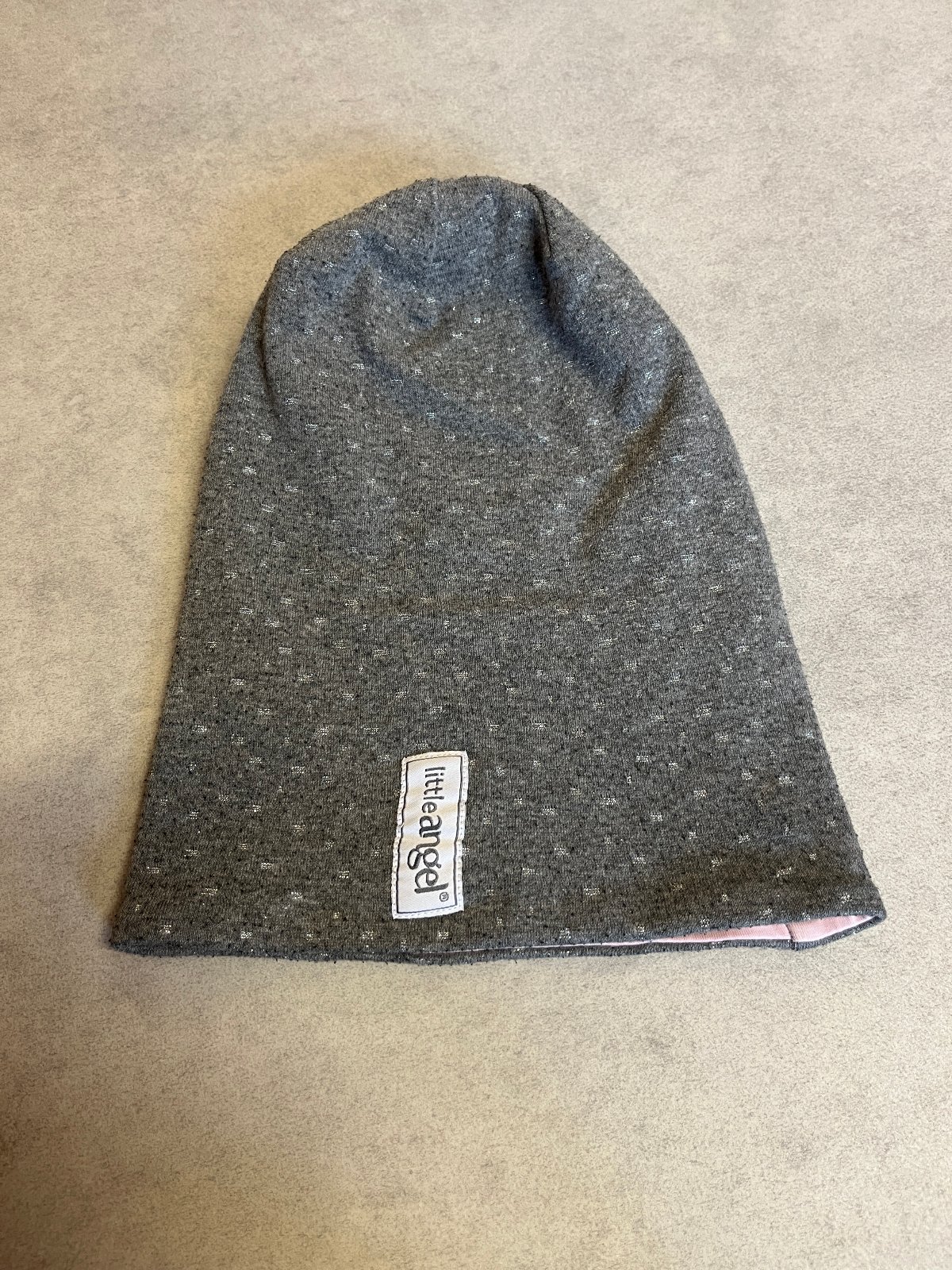 Čepice je více nošená, lehký žmolek. Má světle růžovou podšívku. Dcera ji velmi ráda nosila, bohužel je již malá. Nosila ji od 8 do 10 let.