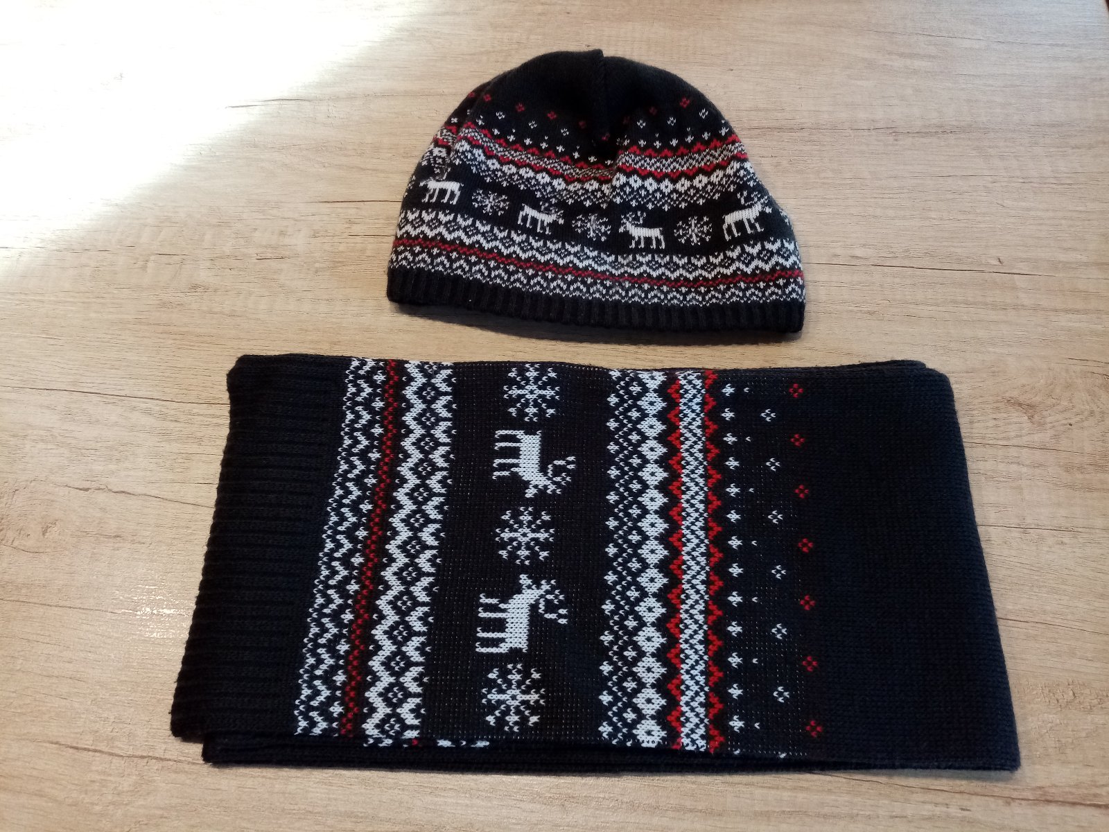 Čepice nošená více (žmolíky), šála minimálně. Velikost uvedena 2-8 let (98/128). Syn nosil kolem 6 roku.