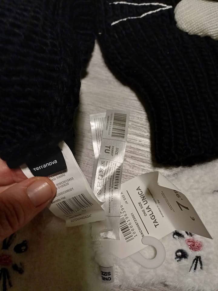 Všechny 3 kusy jsou nové, zapomněla jsem na ně. Cena čepice 50 Kč/ks a rukavice za 35 Kč. Velikost UNI. řekla bych, ze rukavice jsou od 8 do 13 let a čepice od 10 let. Průměr změřím.