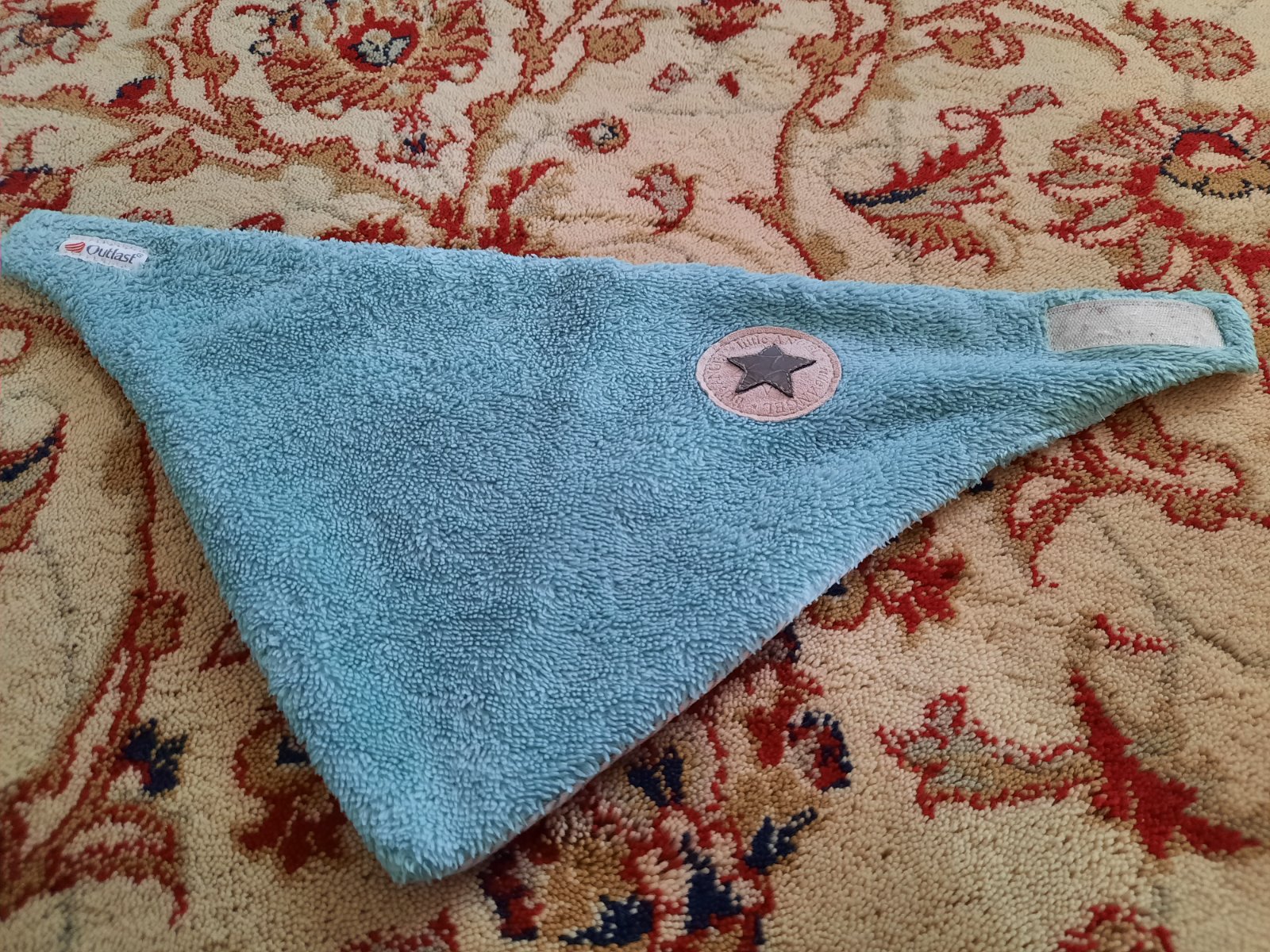Daruji šátek na krk Outlast, už tolik nedrží suchý zip jako u nového, alespoň neškrábe, ještě dobře poslouží. Uvnitř prací chloupek. Vydží.
