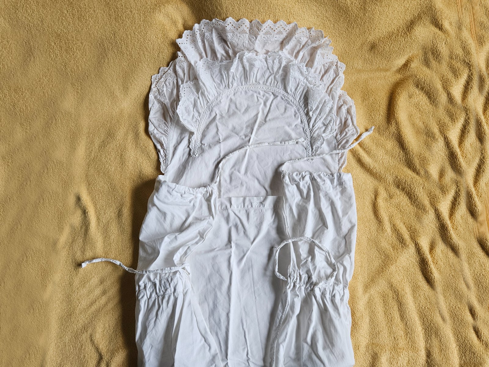 Novorozenecká bílá krajková zavinovačka péřová vložka Cena platí za vše - 2ks zavinovačka, 1 ks péřová vložka.