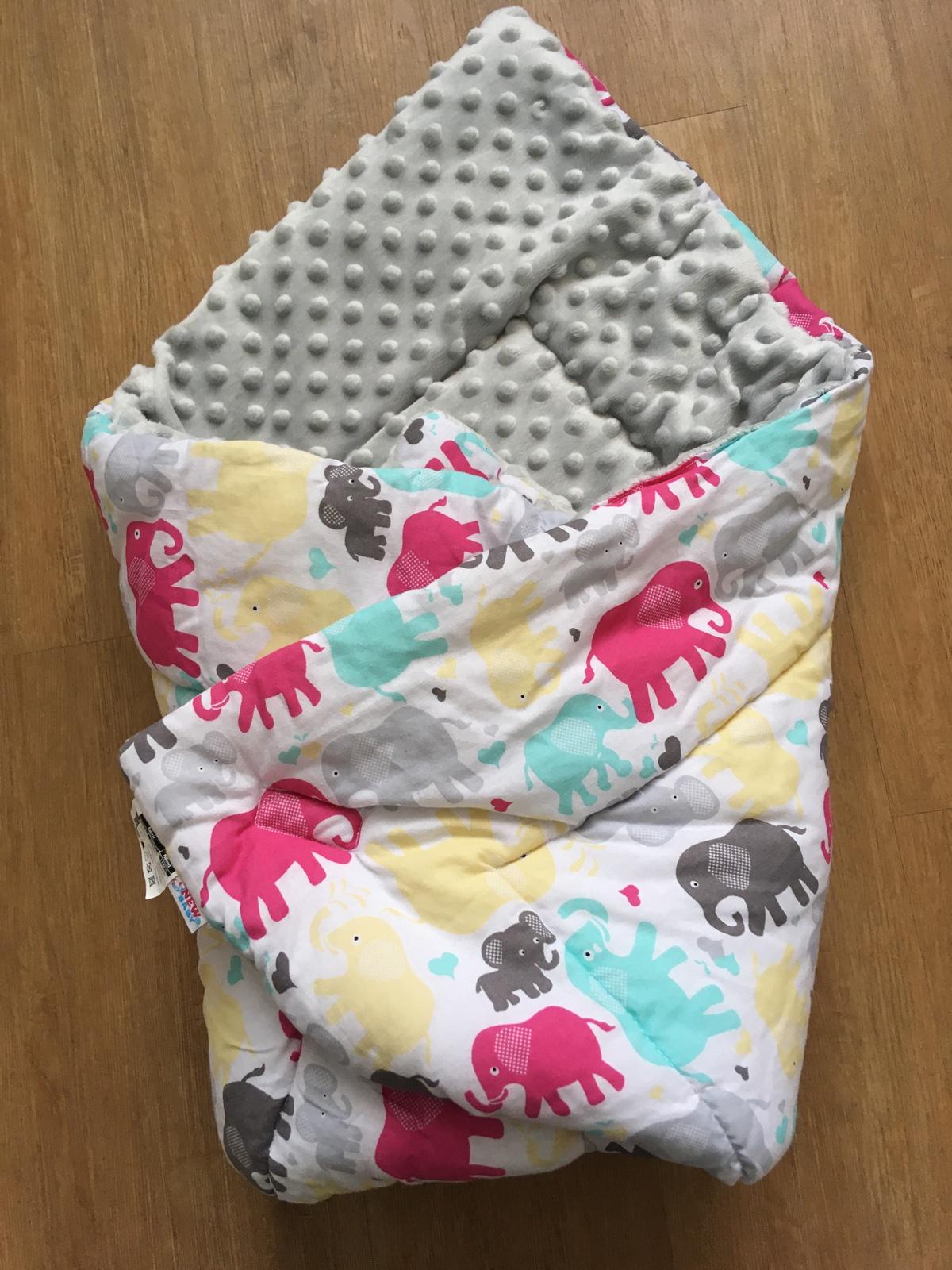 Prodam krásnou rychlozavinovacku na suchy zip, z jedné strany seda minky, z druhé bavlnena slonici na bílé.