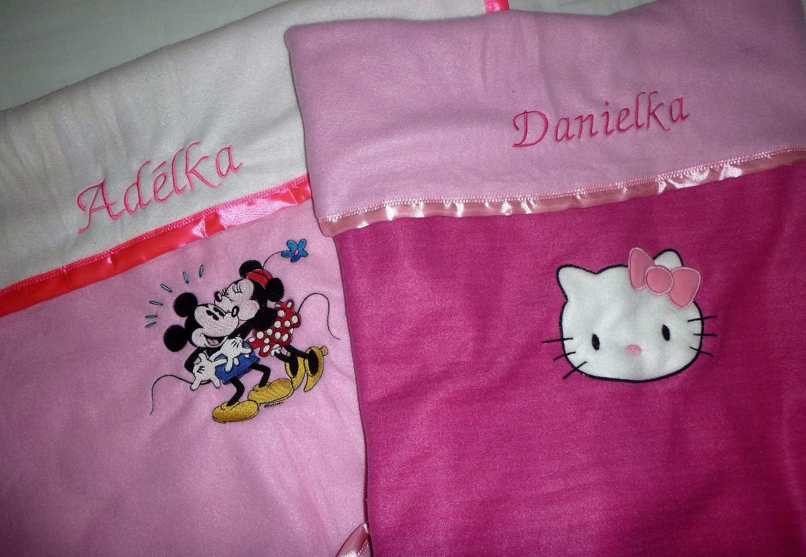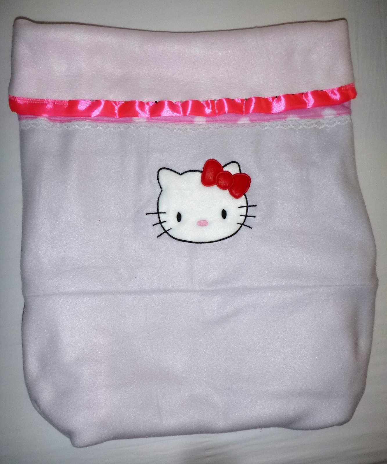 Krásná deka s Hello Kitty,v kombinaci barev: světle šedá, bílá a růžová. Jméno dodělám dle vašeho přání v barvě jaké si vyberete za 45,- ideál by byla sytější růžová aby vše ladilo a zároven´ vyniklo.. Je ihned k odběru. Je trochu větší, takže s vámi v pohodě poroste a poslouží i ve sport´áku, cca. 105×79cm. V případě zájmu nakoukněte , je tu toho mnohem víc a třeba vám v ceně jednoho poštovného 100,- padne ještě něco do oka a využijeme ho na 100% a při odběru nad 1000,- pošta zcela GRÁTIS..!! Zásilkovna 70,-