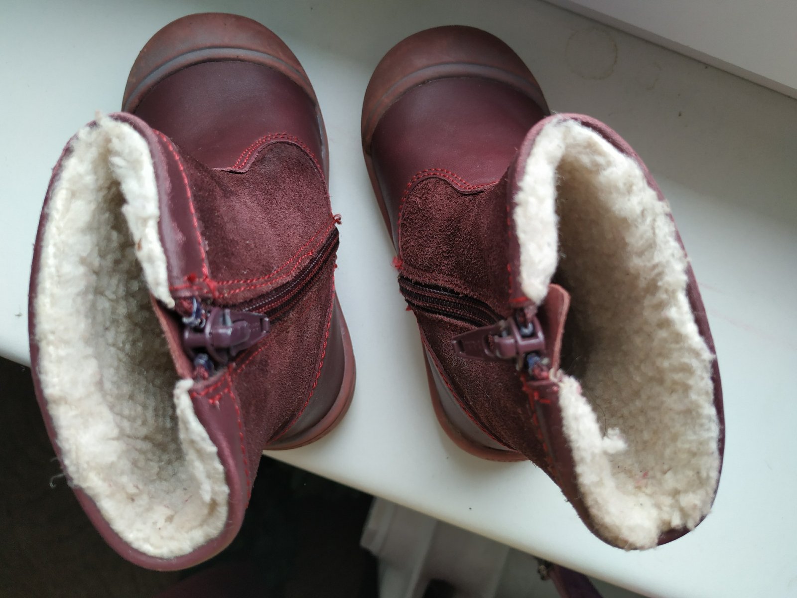Vínová barva, nošené, fleec má již trochu žmolečky a jsou trochu vyšislé. Stélka 14cm