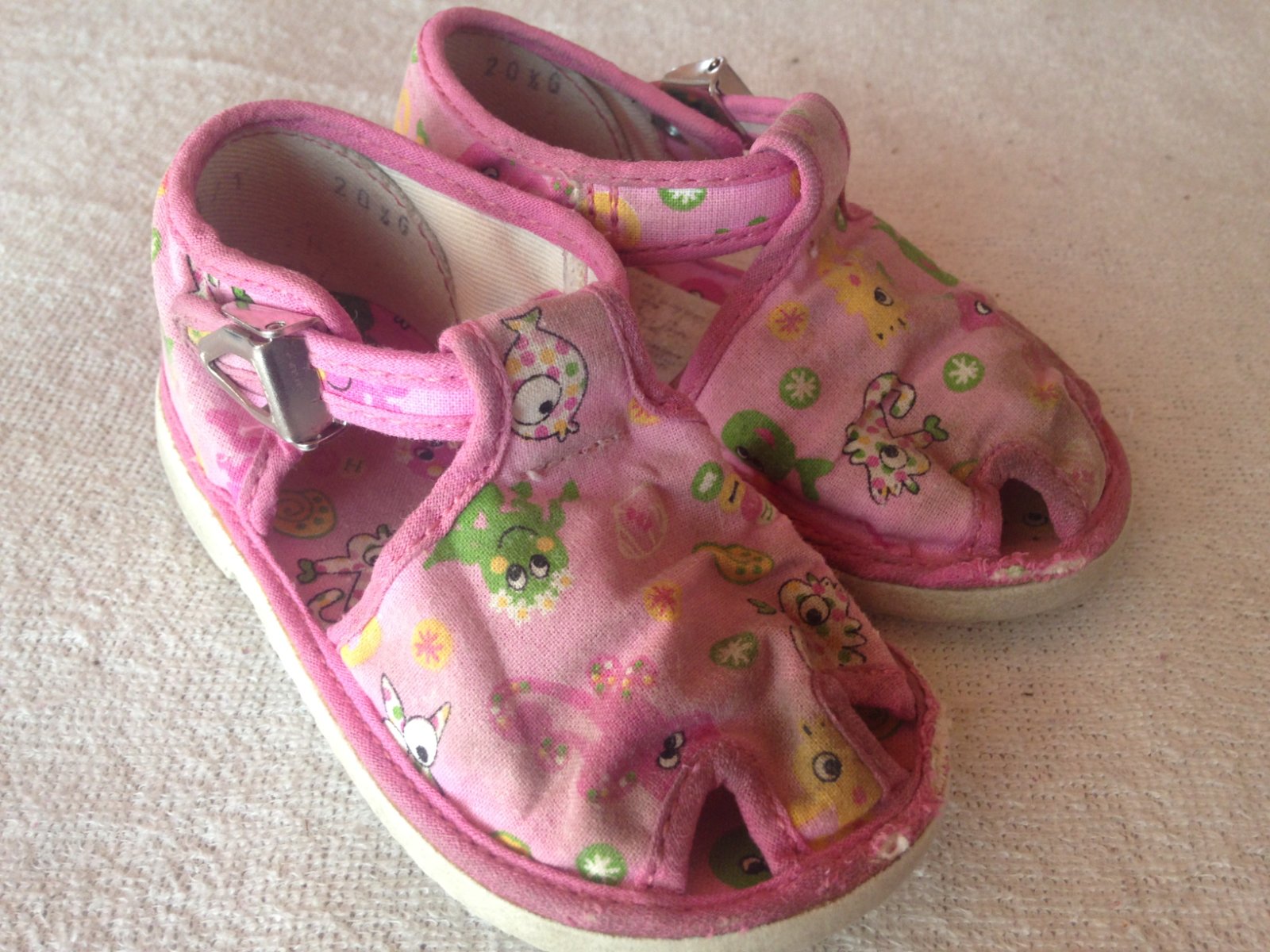 Prodám dívčí papučky s rybičkami ve velmi pěkném stavu, délka vnitřní stélky je 13,5 cm - velikost 20. Cena papuček je: 35 Kč + poštovné. Krabice č. 13.