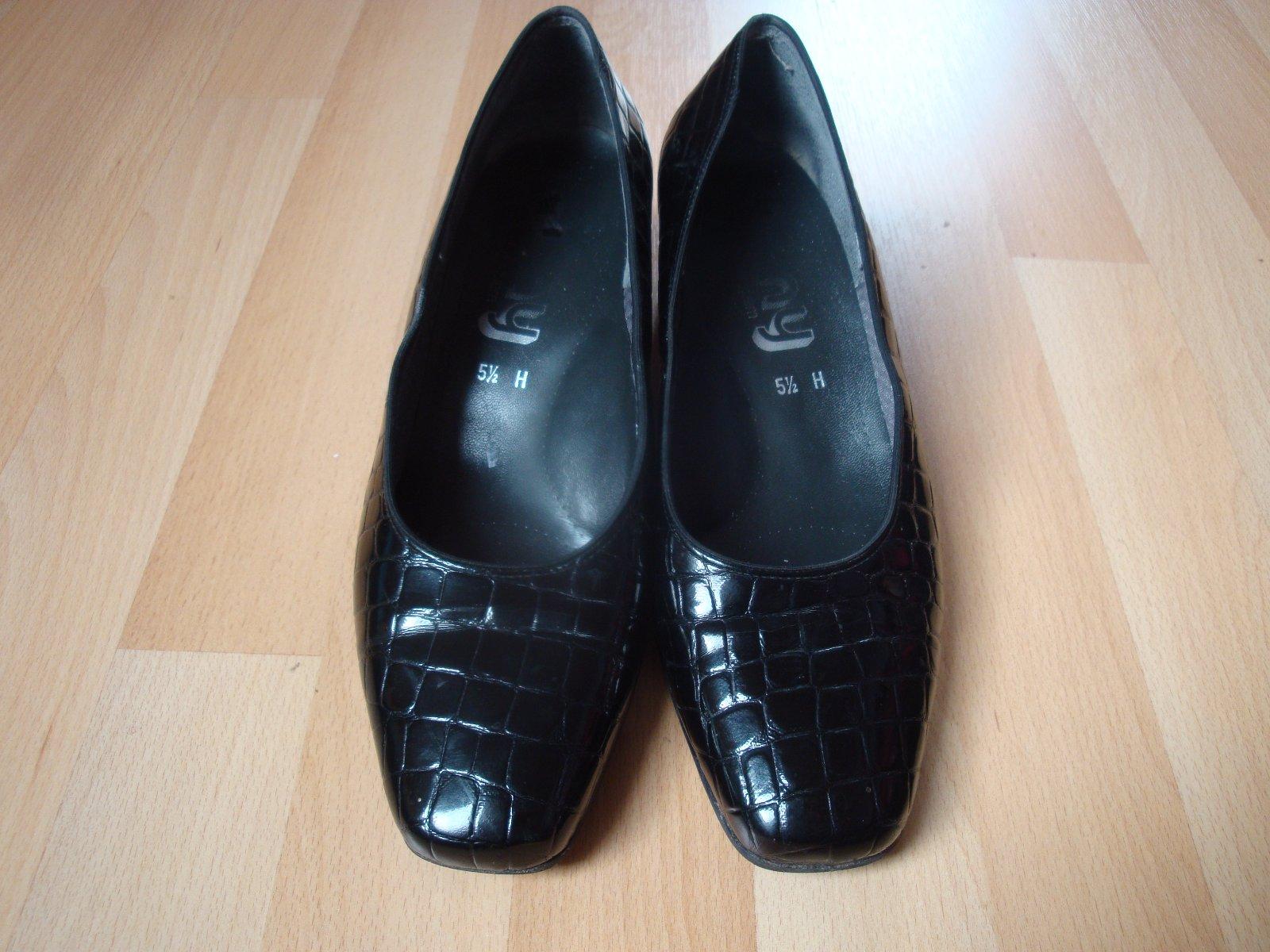 Velmi pěkné lodičky na středním širším podpatku. Lodičky jsou pohodlné, černé lesklé barvy, vel. 38,5. Velmi dobrý stav. Pro více informací mě prosím kontaktujte.