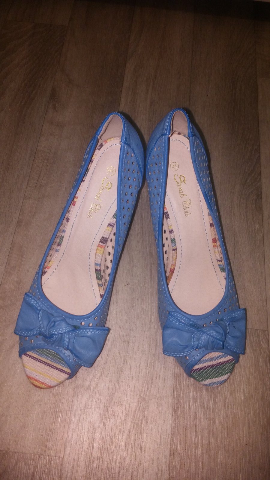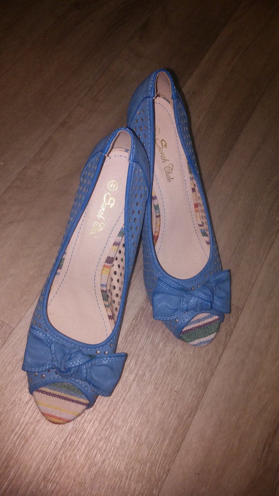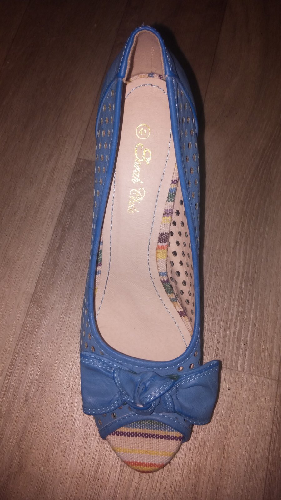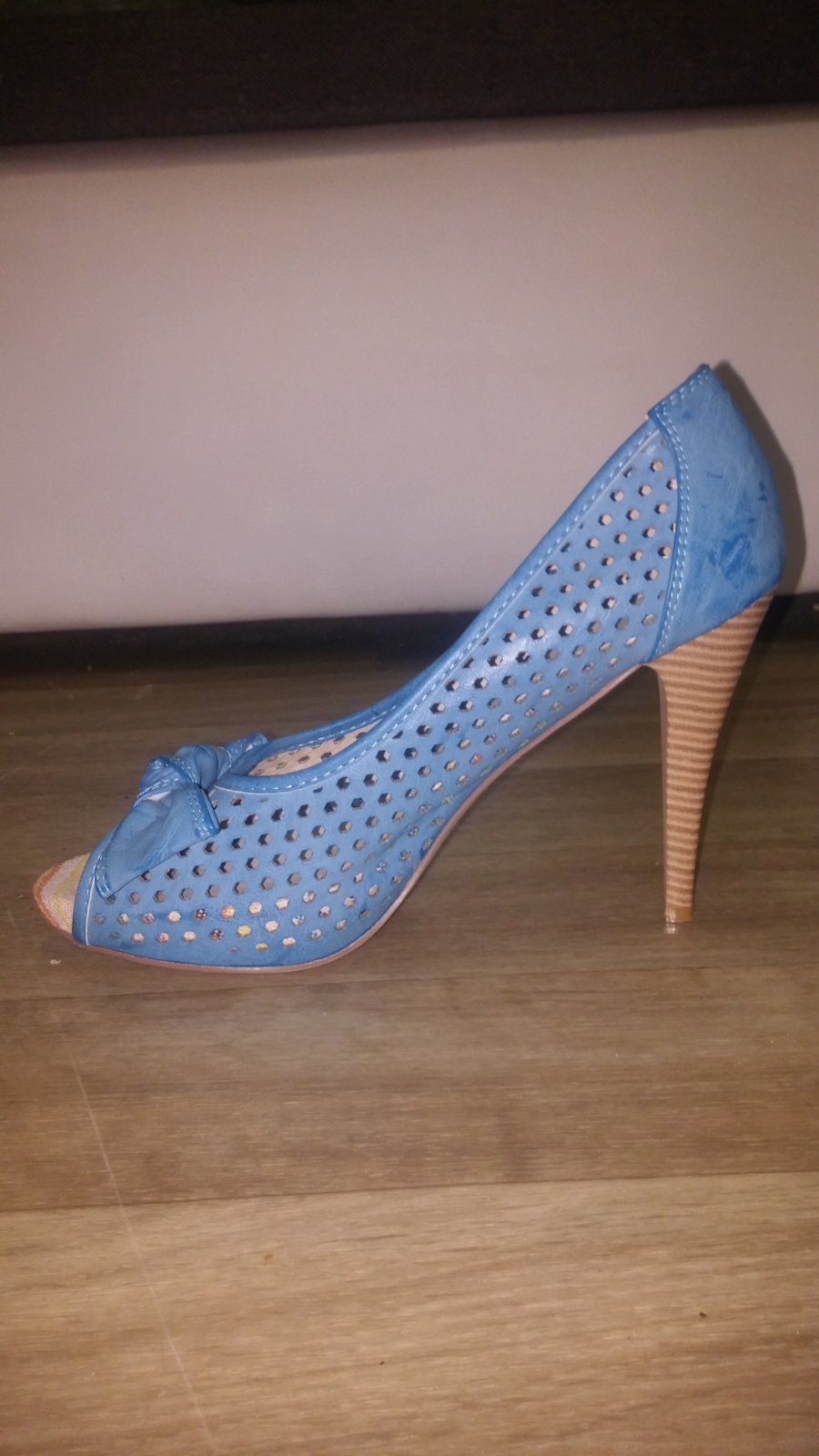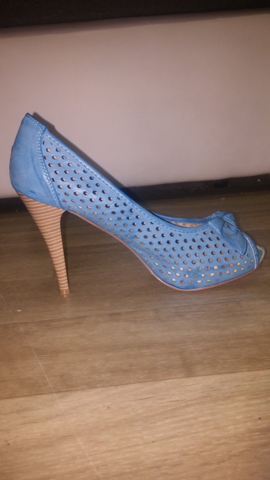 Kožené boty na podpadku o výšce 11 cm. Jsou modré barvy-něco mezi tyrkysovou a petrolejovou. Jen jednou nošené, jako nové, nejsou vidět žádné známky nošení. Velikost 41. Top stav.