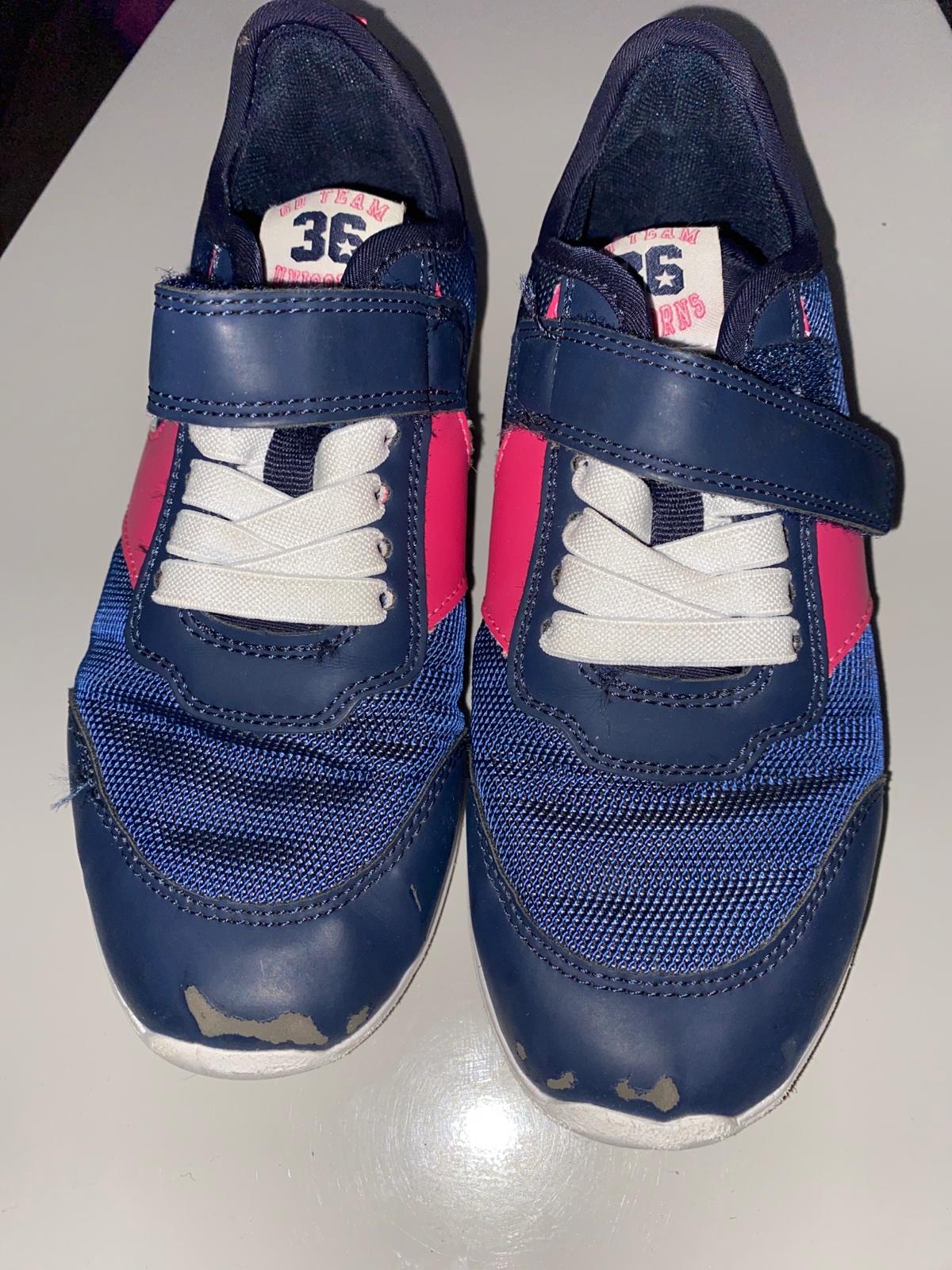Prodám tenisky nošené jen na tělocvik a trampolínky, ještě pěkný stav , jen ty modré na špičkách odřené od trampolíny