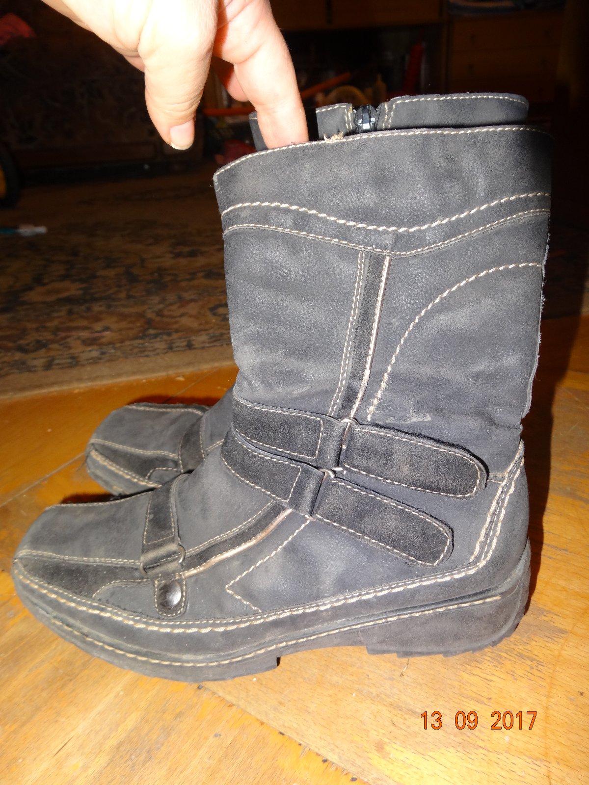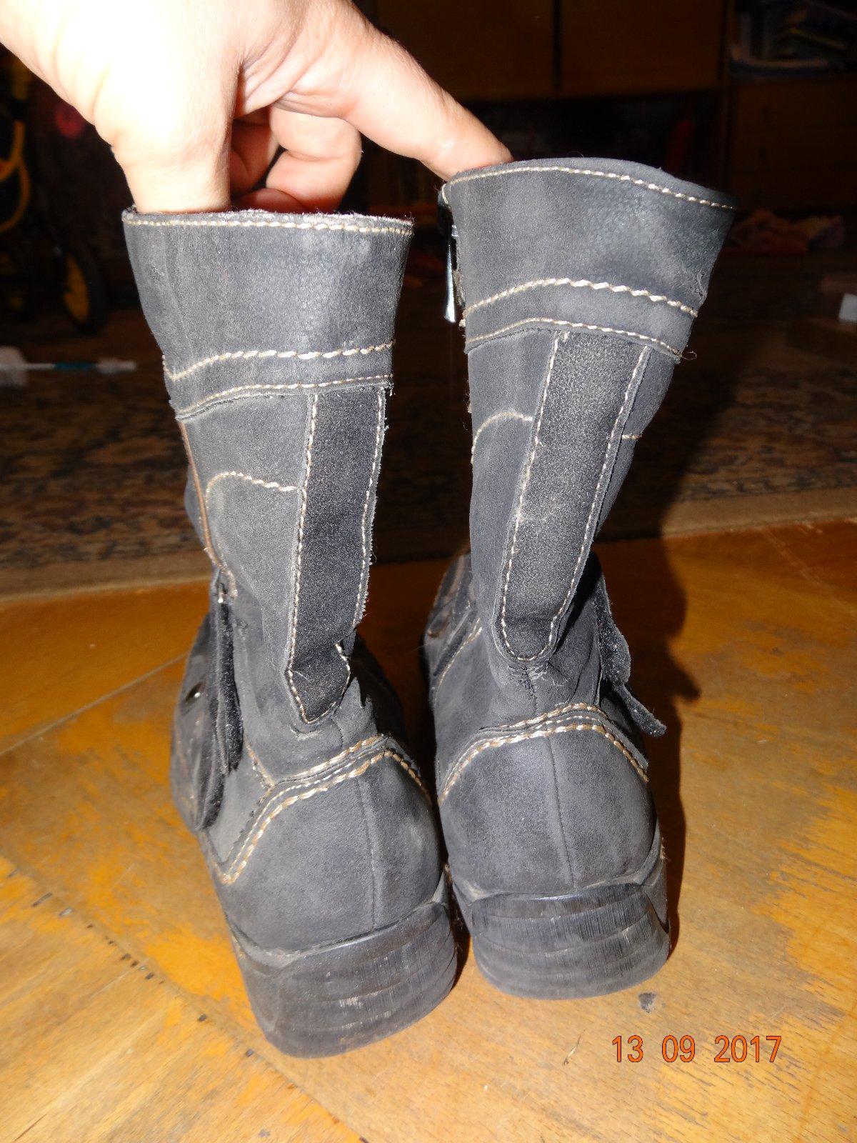 Kozačky je velikost 37, délka stélky je 24,5 cm. výška od stélky nahoru je 20 cm, materiál koženka. Obuv může být dívčí i dámská. Místy má lehké prasklinky, nejde to skoro vůbec vidět. Cena je 7 kč + poštovné. Krabice č. 4.