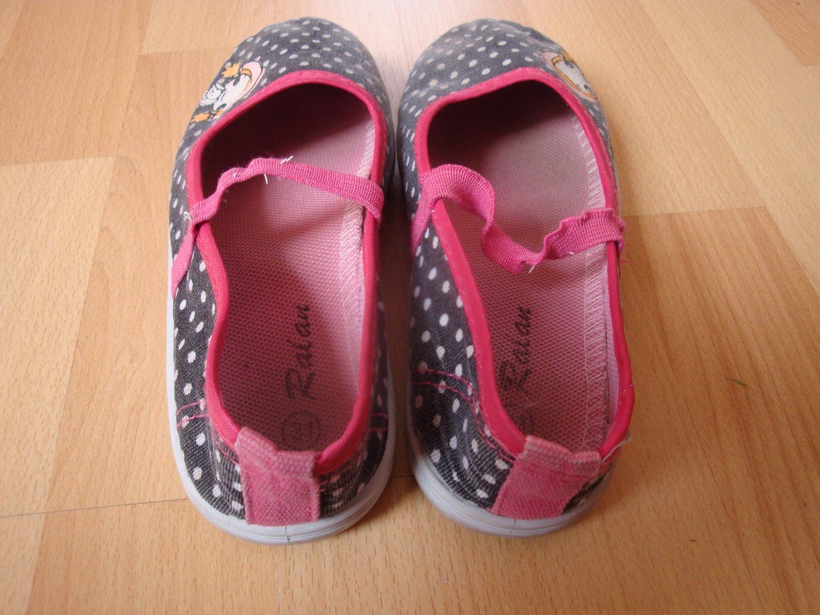 Pěkné balerínky/bačkorky pro holčičky, vel. 31. Botičky jsou černé s bílými puntíky a obrázkem holčičky. Velmi dobrý stav. Výše poštovného činí 55,-Kč za doporučený balíček. V případě dotazů mě prosím kontaktujte.