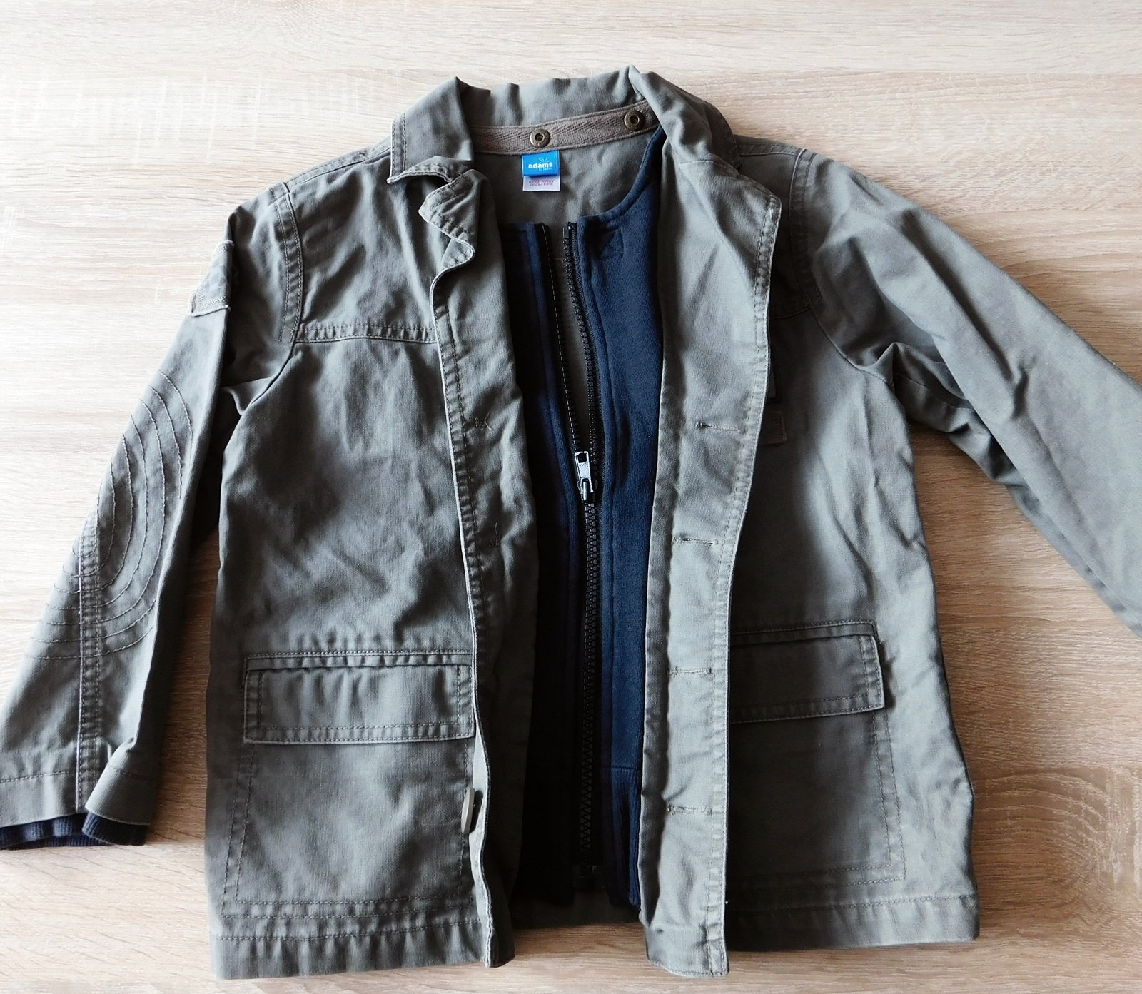 moderní army stylová bundička,d.45cm,š.2x38cm,ruk.od krku 46cm,efekt všité mikiny