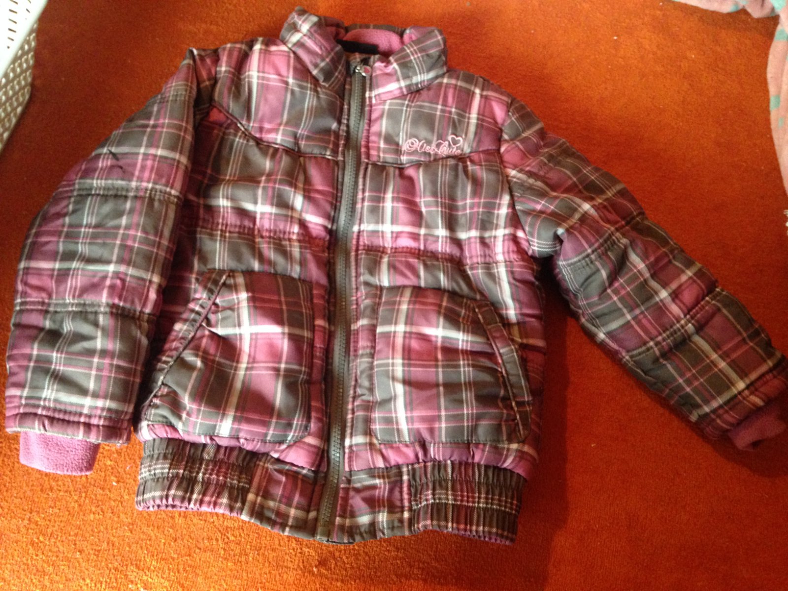 Prodám bundičku v perfektním stavu, velikost: 104, složení: 85 % polyakryl, 15 % polyester, složení výplně: 100 % polyester - je to na jaro/podzim akorát, barvy jsou: sytá růžová, světle hnědá, bílá, světle růžová, na rukávu je 2 centimetrové proužky - vyfoceno, cena tomu přizpůsobena, na zádech je reflexní srdíčko - je z části párlé, šikovná maminka spraví. Cena bundičky je: 49 Kč + poštovné. Krabice č. 38.