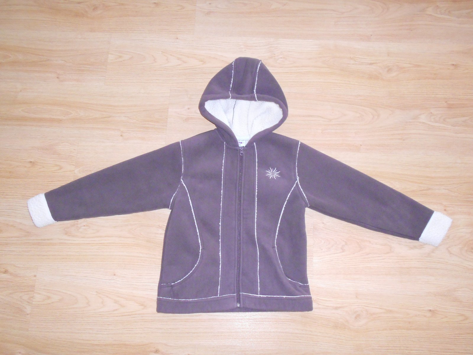 Prodám hnědou bundu-mikinu s kožíškem uvnitř vel.134/140,délka 55cm,šířka 2x45cm,délka rukávu od krku 62cm(rukáv lze zahnout,tím pádem ponosíte déle),teplá,nošená,stále hezká,vady jsem nenašla,cena 200kč.