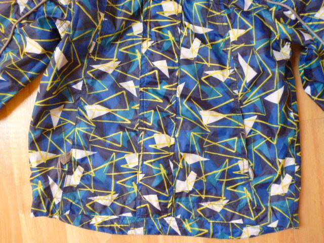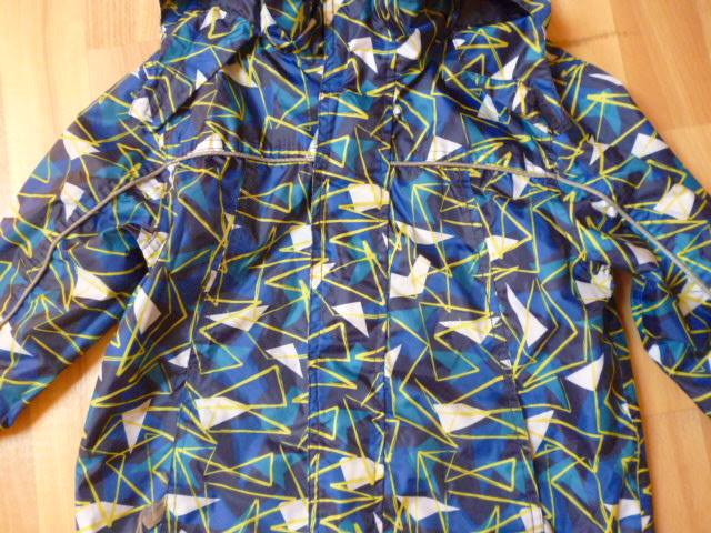 Nošená spíš méně, žádné vady nevidim, moc pěkná, po celé délce všitý refl. proužek, podšitá šusťákem, super i na podzim na flísovku, délka je 48 cm, vzadu 53 cm, šířka je 2x 42 cm, rukáv od krku je 45 cm.kapuce je schovaná v límci, vpředu kapsy na zip.psaná vel. 104,ale vydrží déle. zn.X-Mail....kombinace modré-bílé a neonově zelené.
