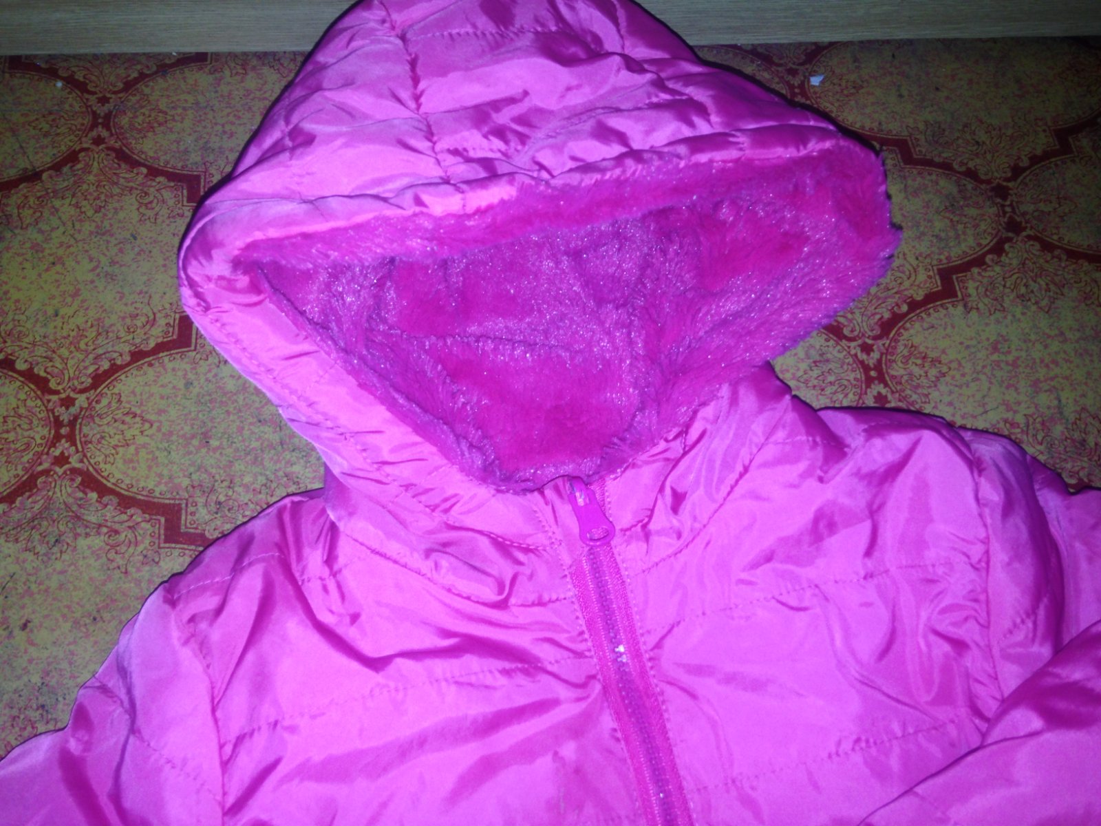 Prodám bundu v perfektním stavu, velikost: 104, složení: 100 % polyester, vevnitř je to chlupaté, příjemně teploučké, pořizovací cena 500 Kč. Cena bundičky je: 249 Kč + poštovné. Krabice č. 2.