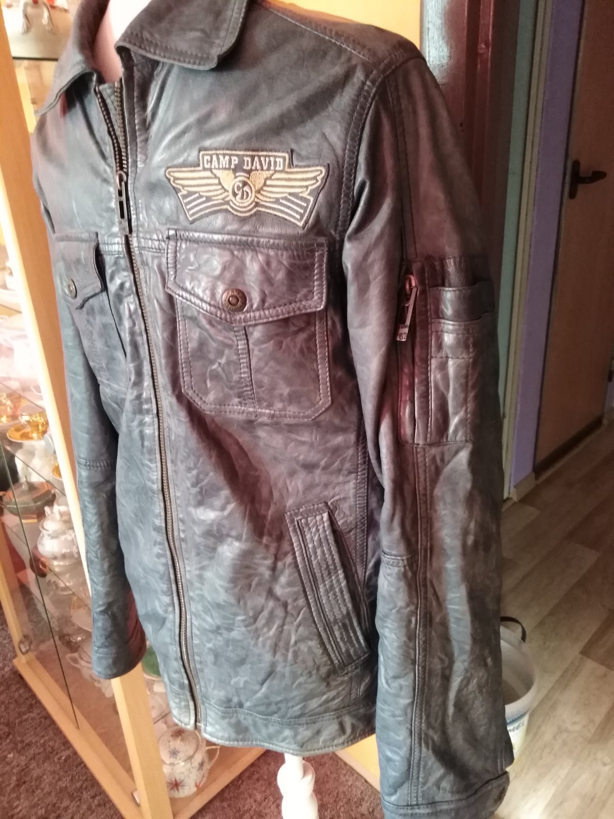 vel S obvod prsa 102 cm délka 66 cm pas 100 cm délka rukávů 66cm délka rukávů od krku 77 cm pravá jemná kůže zn.Camp David