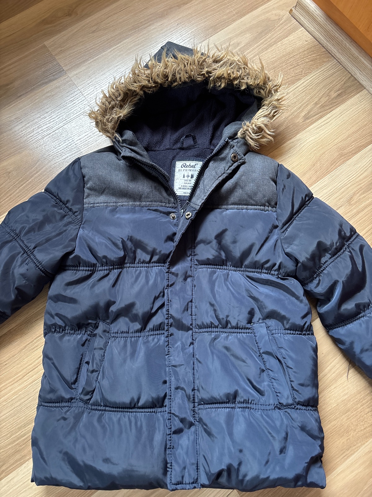 na přední straně zatržená nitka viz foto, na rukávu tři pididírky, zohledněno v ceně, jinak moc hezká, poslední dolní díl bundy není výplň 100%, jinak bez vad, moc hezká, teloučká. Podšitá fleesem
