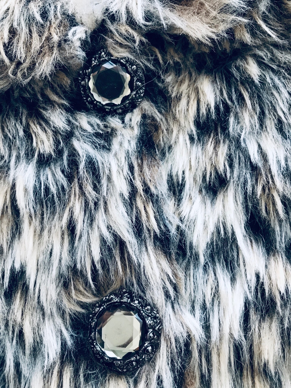 Minimální známky nošení ,bez poškození´, bez žmoliku. Podšívka z hladkého polyesteru. Zapínání na ozdobné knofliky.