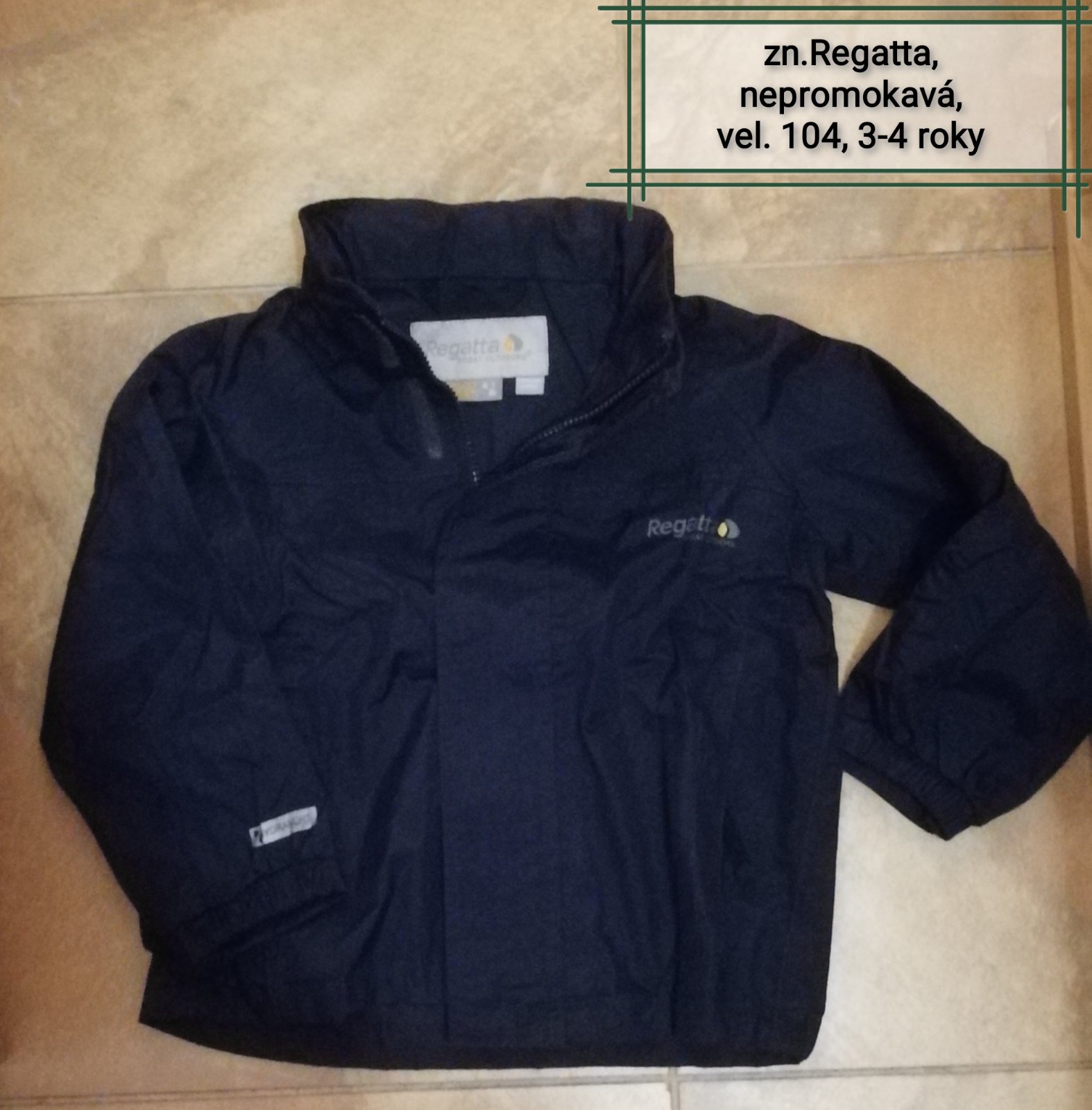 je nošená, pěkná, bez výr. vad, jen nutno vyprat-ušmudlaná od přepravy, délka je 41 cm, rukáv od krku je 44 cm, šířka je 2x35 cm, psaná vel. 3-4 zn.Regatta