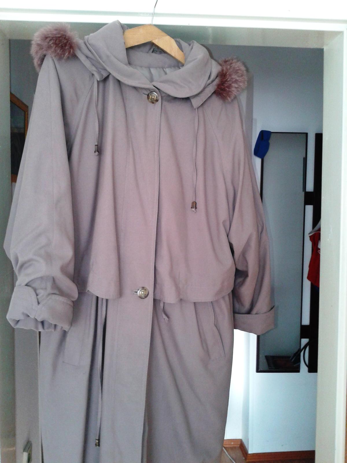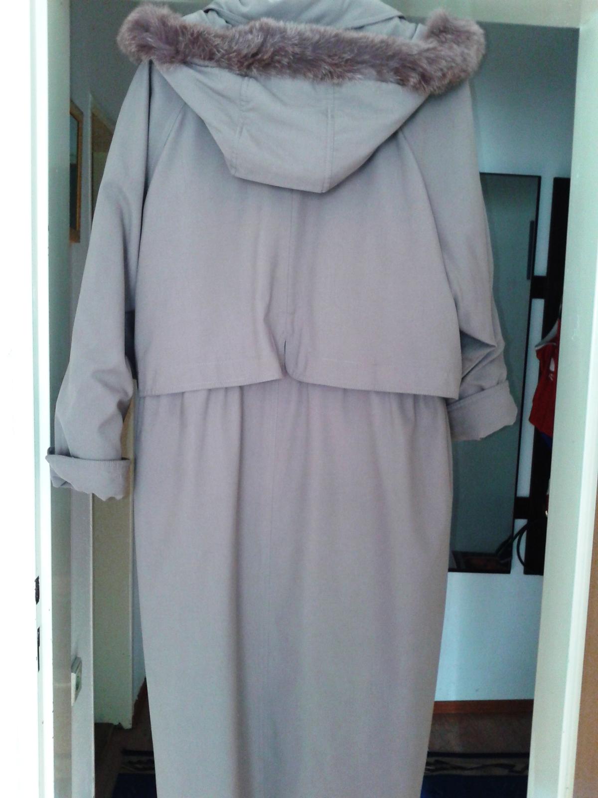 Nabízím dlouhý kabát vel. 44, lehký, teplý, precizně ušitý s odepínací kapucí. Kabát je decentní hnědo-fialkové barvy, v pase stažení na šňůrku, kapuce lemovaná pravou kožešinkou, v perfektním stavu. Velikost lze upravit stažením šňůrky v pase na 42-46.