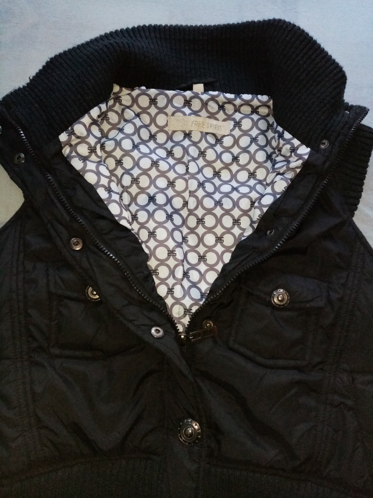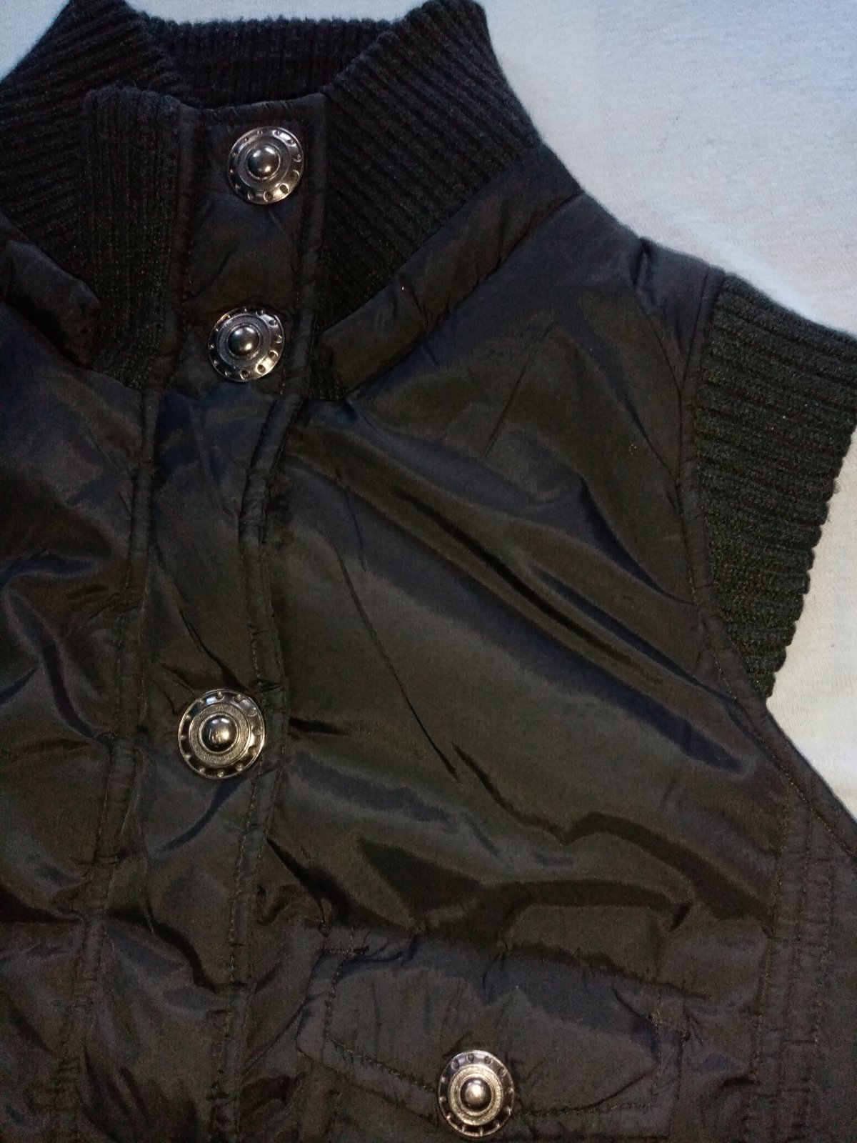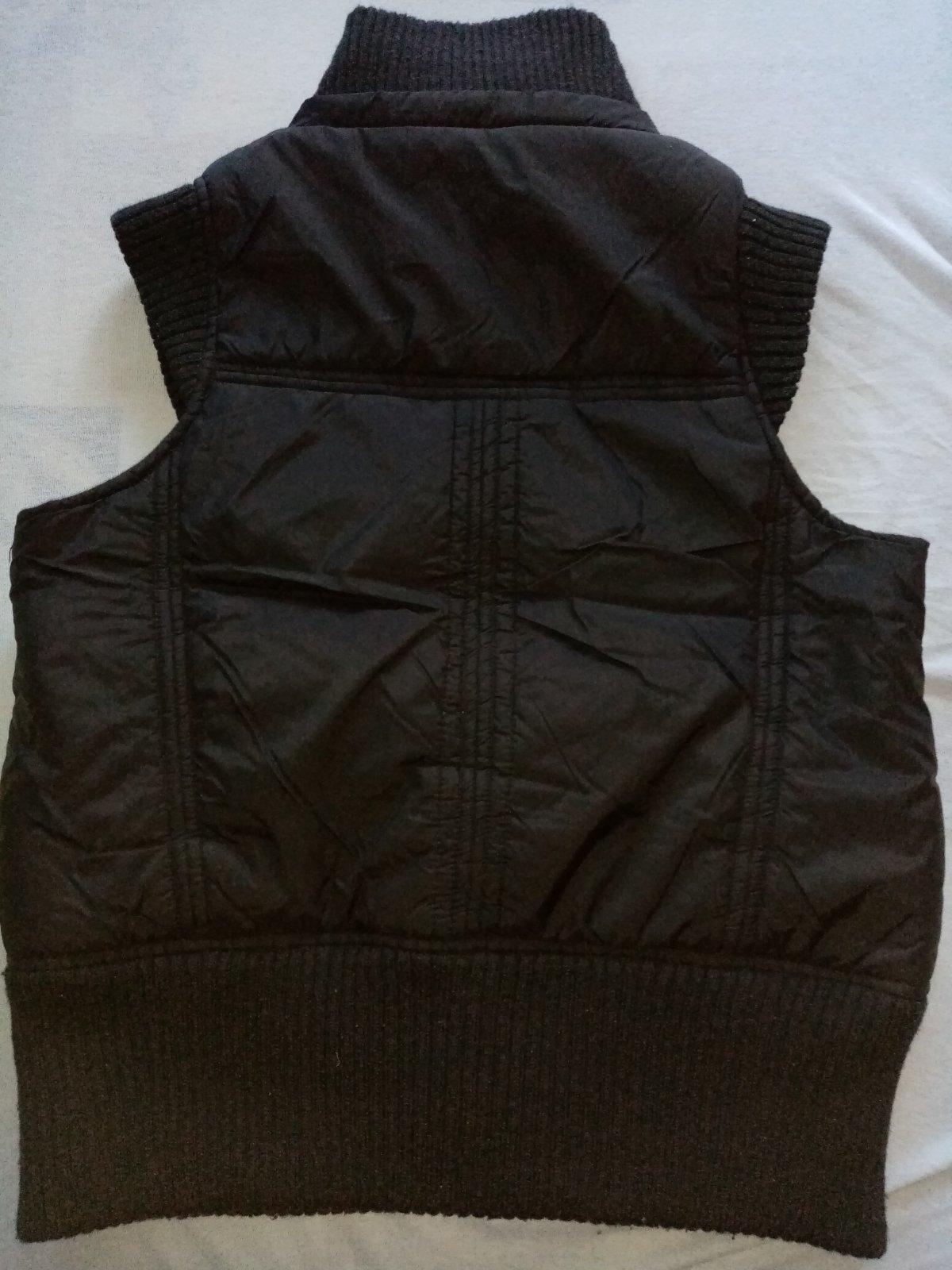 Prošívaná vesta s vysokým úpletovým stojáčkem u krku.