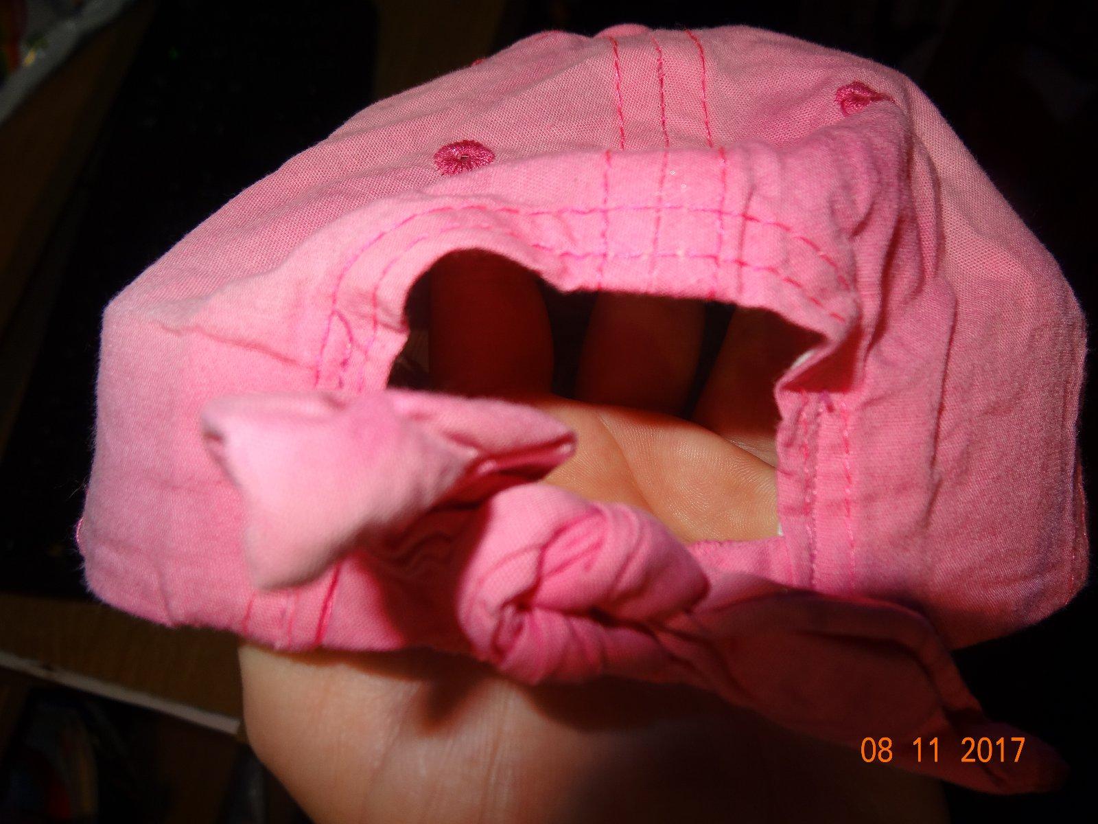 Prodám dívčí kšiltovku, značka Scorpio, obvod 45 - 48 cm (pod mašličkou je pružná gumička), složení 100 % bavlna, v perfektním stavu, akorát má 2 barvy, je vybledlá od sluníčka ze předu a zezadu je tmavší růžová. Cena 18 kč + poštovné. Krabice č. 6.
