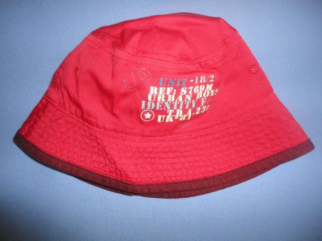 Červený klobouk s nápisem je oboustranný, uvnitř béžový s kapsičkou na suchý zip, top stav, obvod 49, výška 18cm