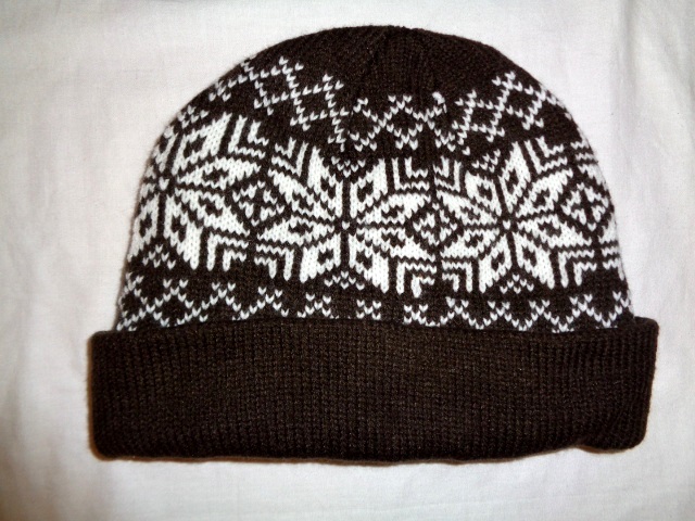 Krásná čokohnědá čepice - alpský vzor-uvnitř flíz