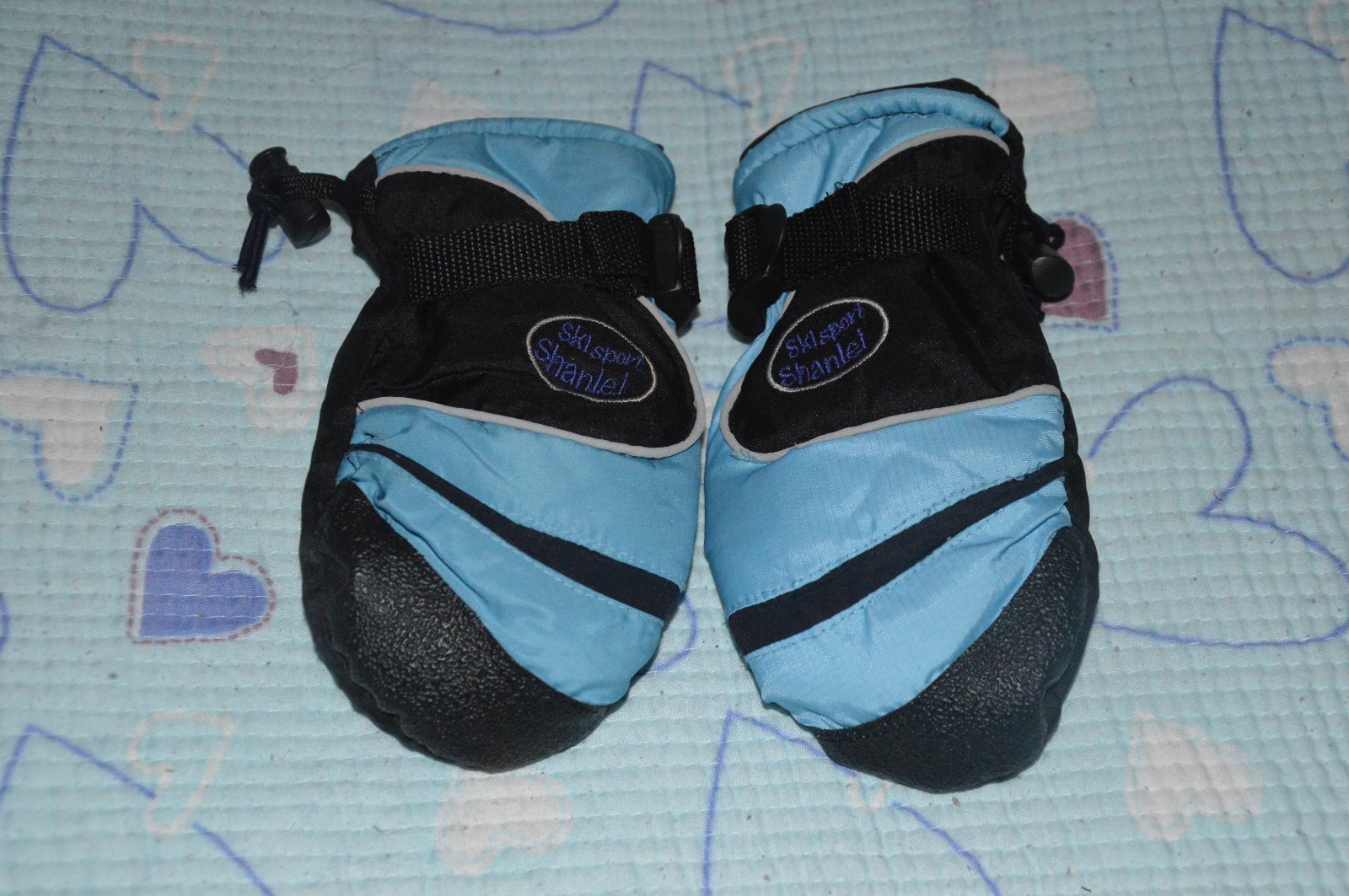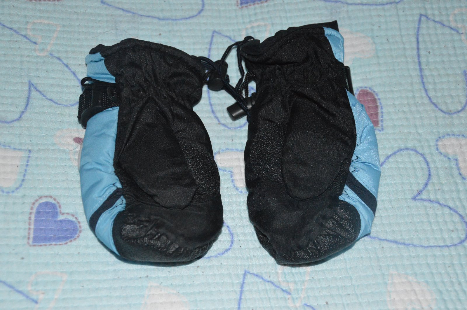 modro černé,velmi pěkné, zespodu vyztužené mezi dlaní a ukazováčkem, lze rychle upnout stahovací přezkou v zápěstí, super na lyže nebo boby, délka 14/19cm