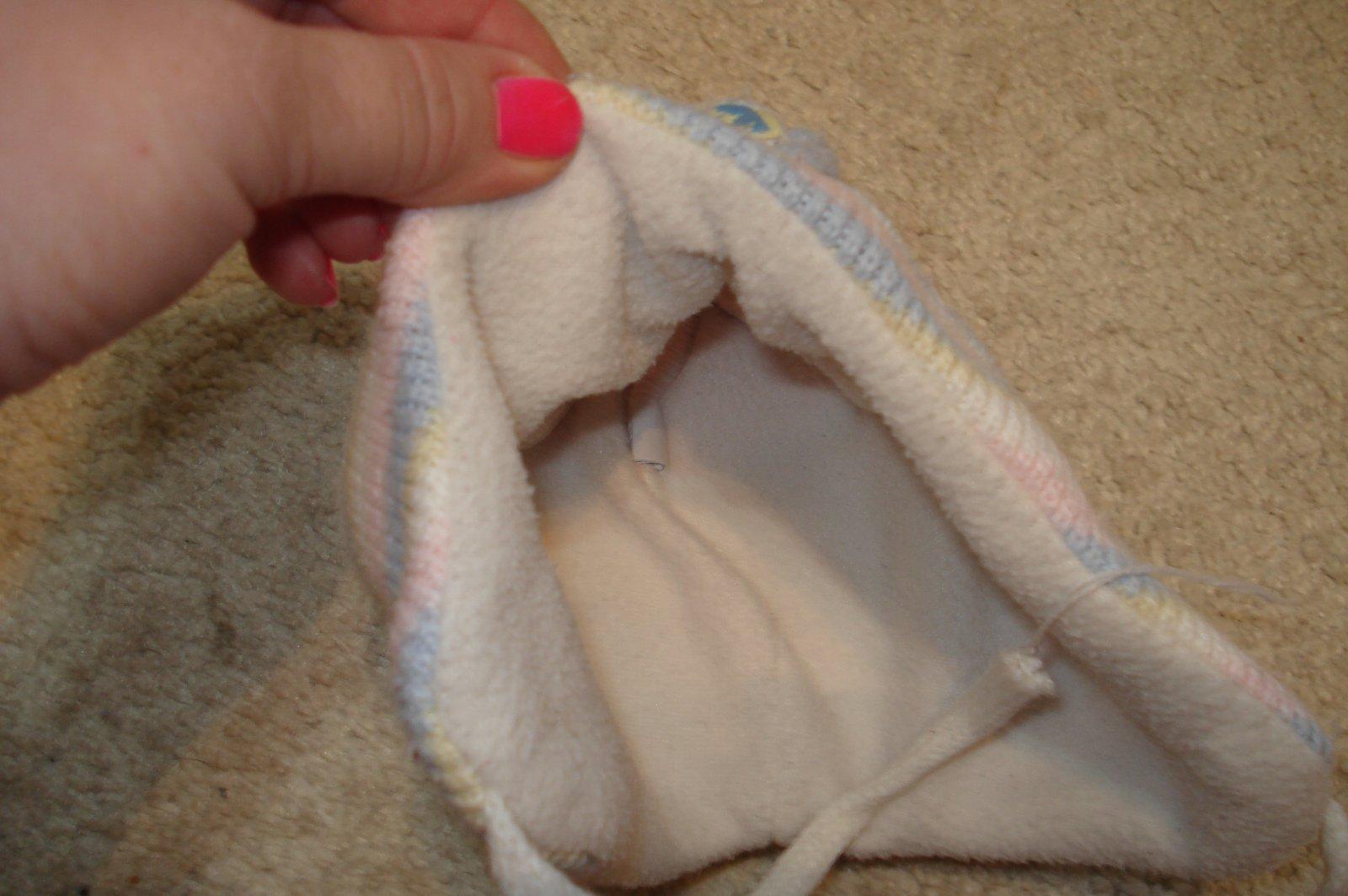 Krásná pletená čepička uvnitř fleece.Velikost cca 1/2 roky.Rozměry obvod 42 cm v klidu,výška 14 cm.Je moc hezká bez vad jen jemný prací žmolík