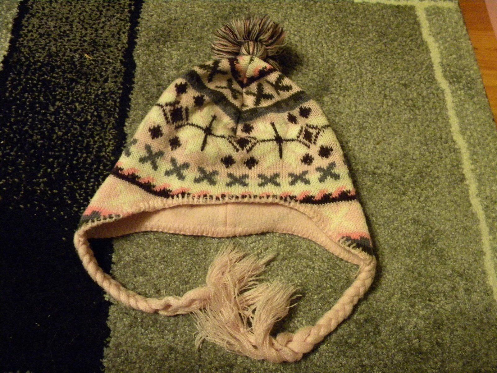 Zimní čepice pro holku vel.98,dvě vrstvy,uvnitř flauš-u copánků má puštěná očka viz.foto,obvod volně 46 cm + poštovné 80 kč.Na dobírku nezasílám!!