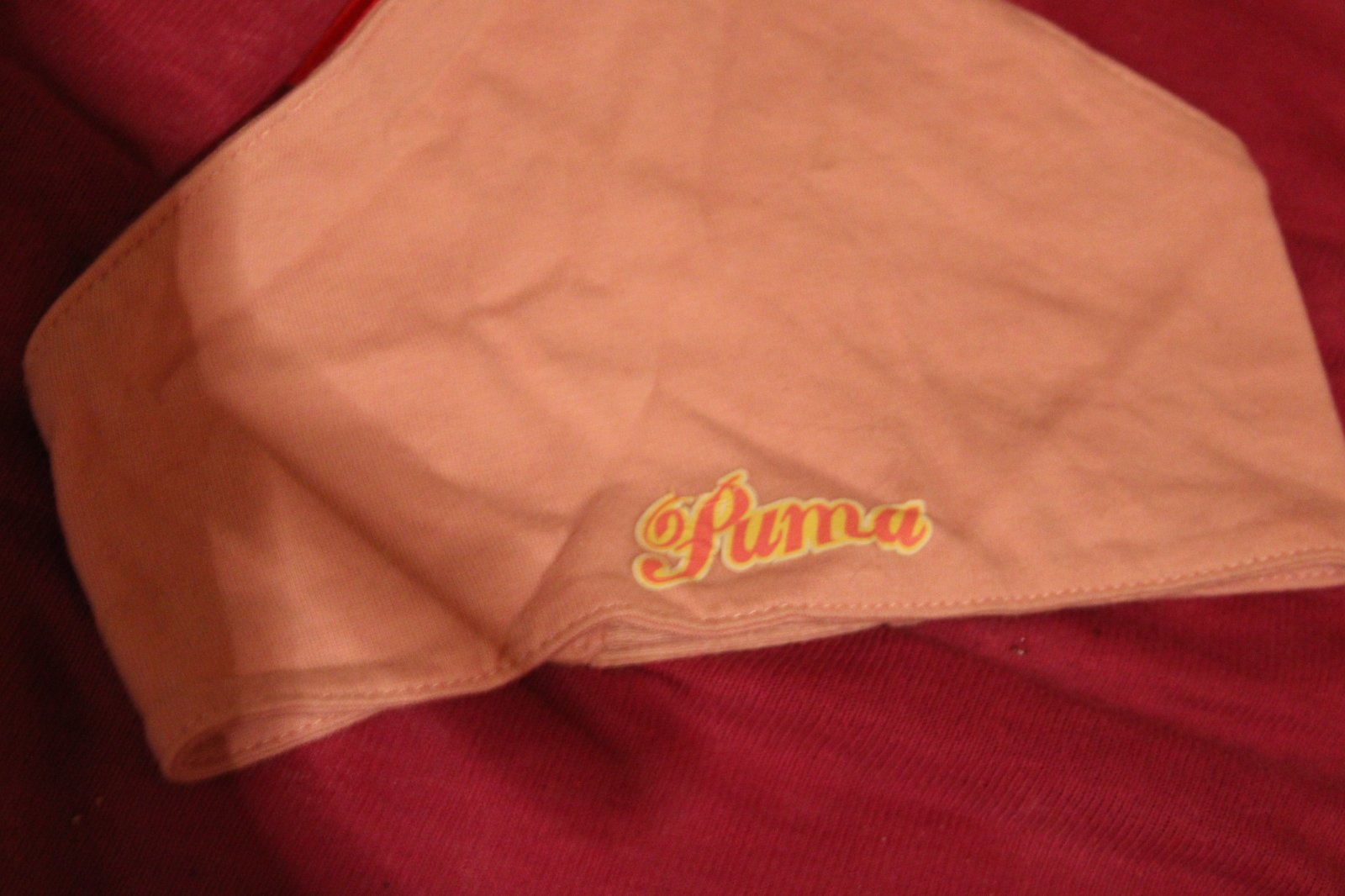 Prodám šátek na hlavu v moc pěkném stavu, akorát nápisy puma a obrázek pumy je lehce sepraný, na funkčnost nemá vliv, značka: Puma, obvod šátku je: 43 - 45 cm, vzadu je šátek na suchý zip, aby se dal dát na hlavičku tak, aby pěkně držel na hlavě, složení: bavlna. Cena šátku je: 35 Kč + poštovné. Krabice č. 29.
