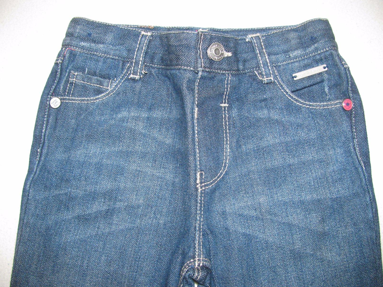 Tmavě modré,značkové džíny,v pase regulace,a na knoflík,kapsy, vyšívky, 100% bavlna.