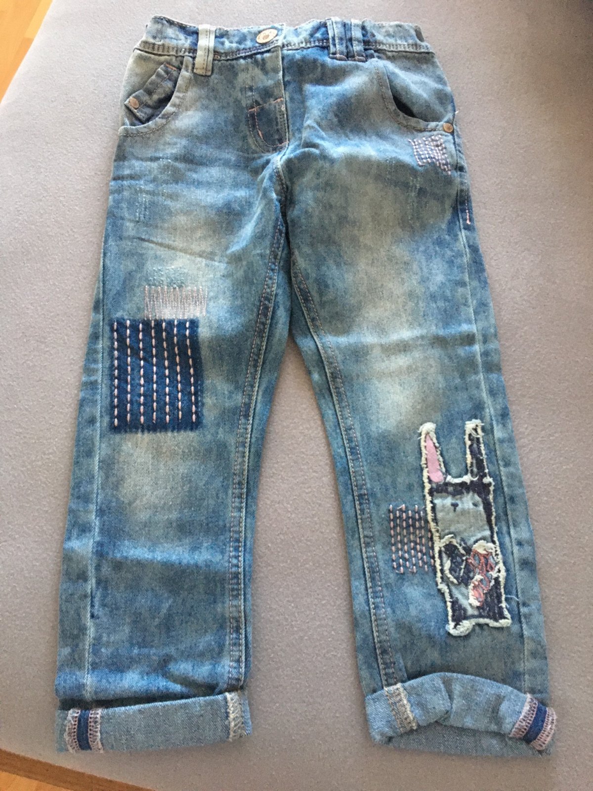 už světlejší, na kolenech o něco více jinak ok, cd 57, pas max 2x 30cm v nabídce další věci s myškou nebo zajdou vel. 104 viz foto