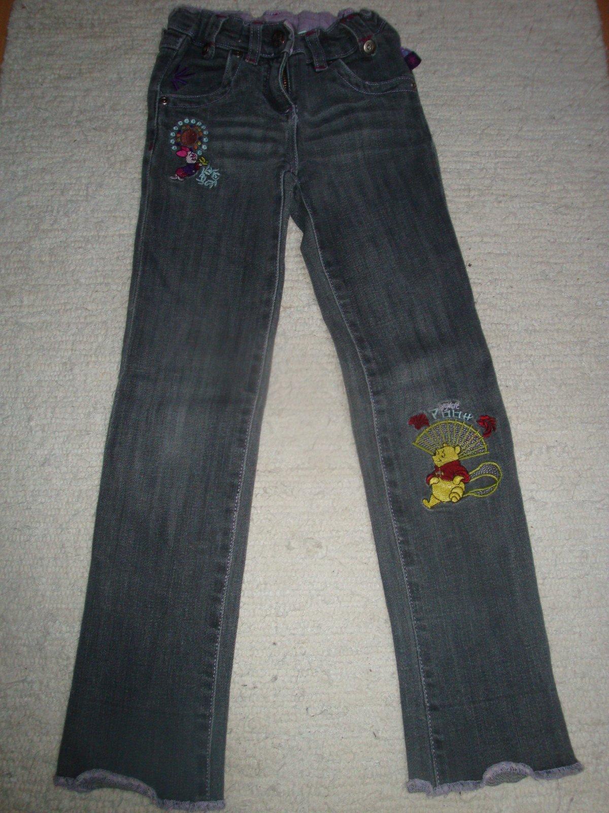 Velmi pěkné džíny pro holčičky s aplikací medvídka Pú a Prasátka. Džíny jsou v barvě světle černé se čtyřmi kapsami a zapínáním na patent a zip. V pase jsou částečně na gumu a jsou s regulací. Udaná velikost je 104, nicméně džíny jsou spíše pro děvčata okolo 6-ti let, zn. C&A z kolekce Disney. Top stav, jako nové. Výše poštovného činí 65,-Kč za doporučený balík. V případě jakýchkoliv dotazů mě prosím kontaktujte.