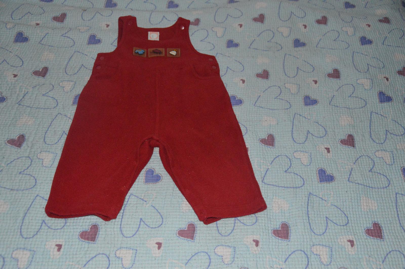 tm. červené - vínové, zn. Gymboree, ve. 6-12M, skvělé kalhoty do nepohody, doporučuji.