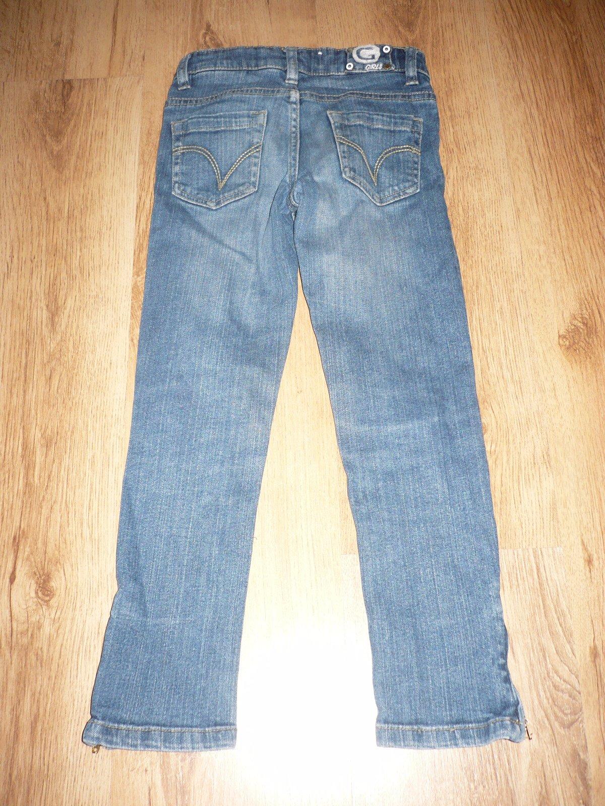 Rifle vel. 116, dívčí, nošené a prané, stále hezké, dole po bocích krátký zip, regulace v pase, příjemný materiál.